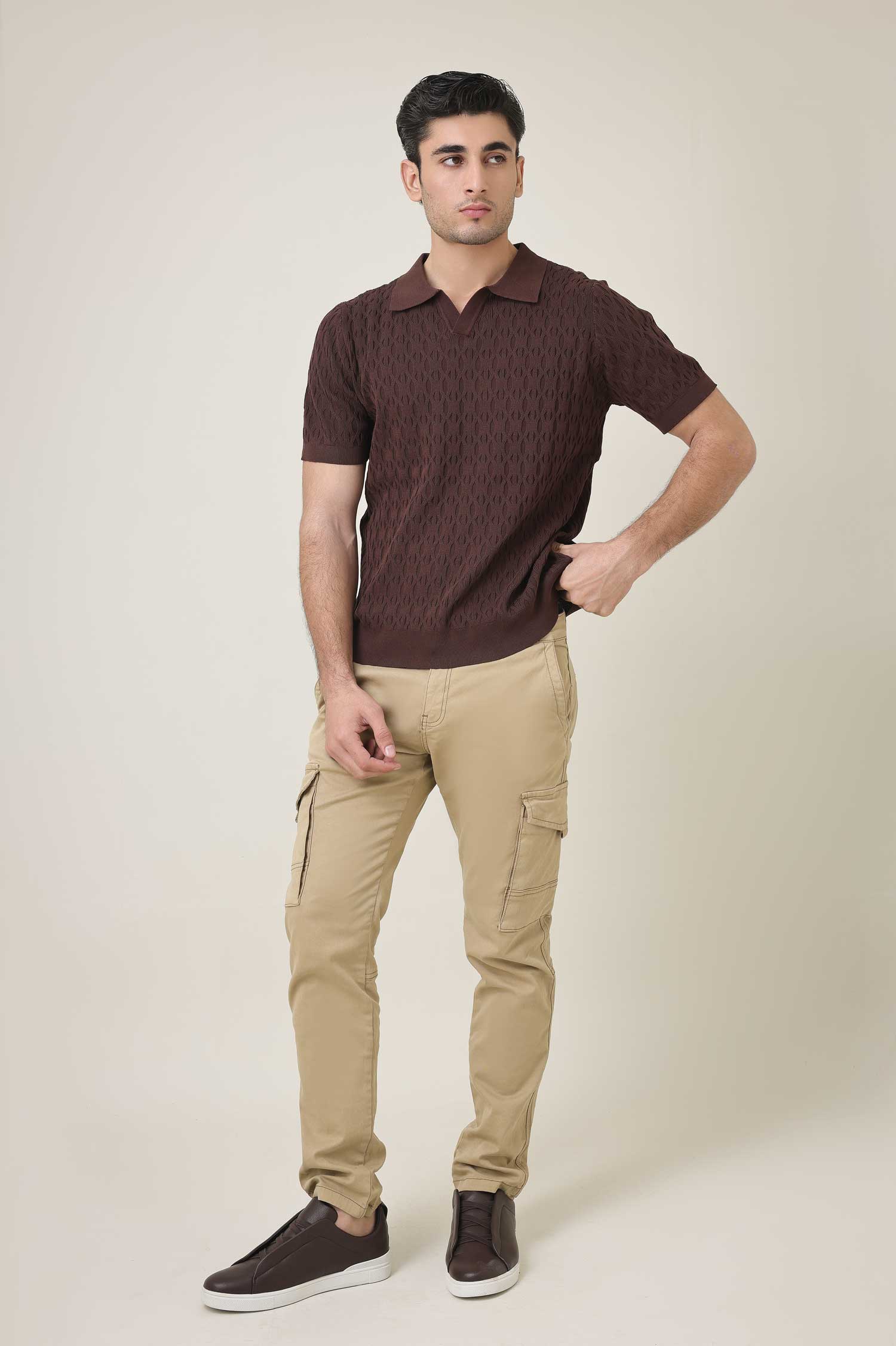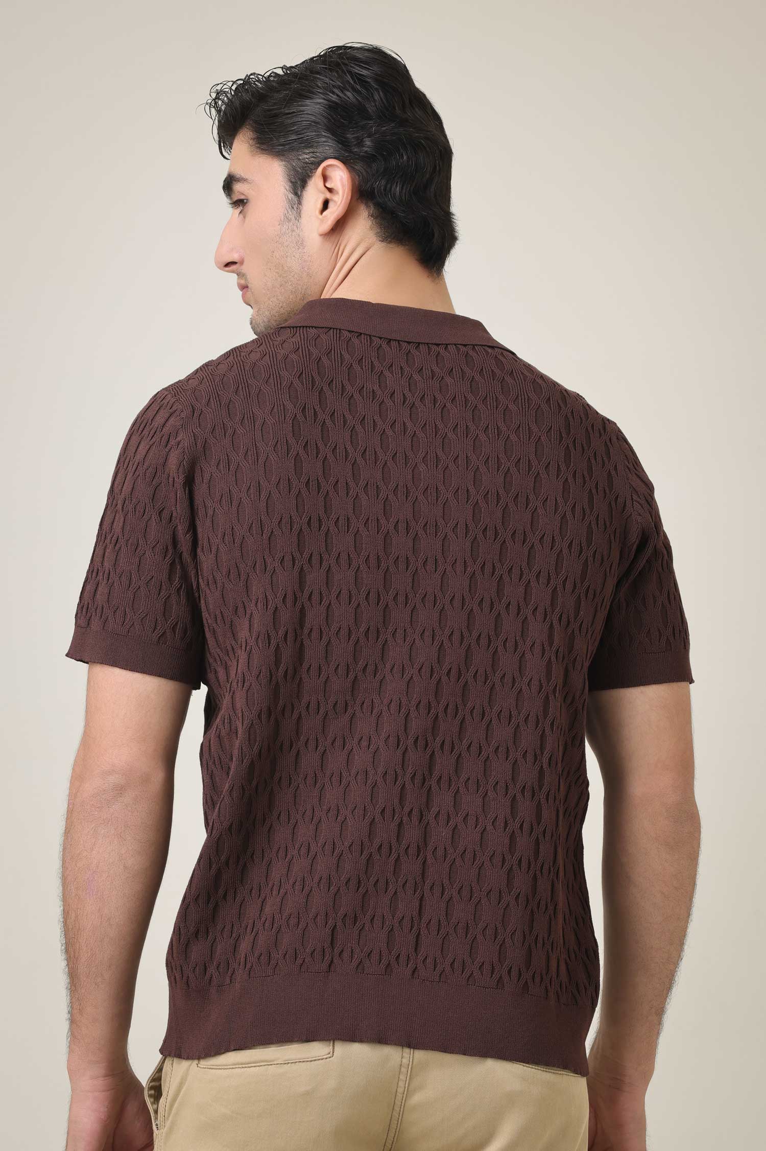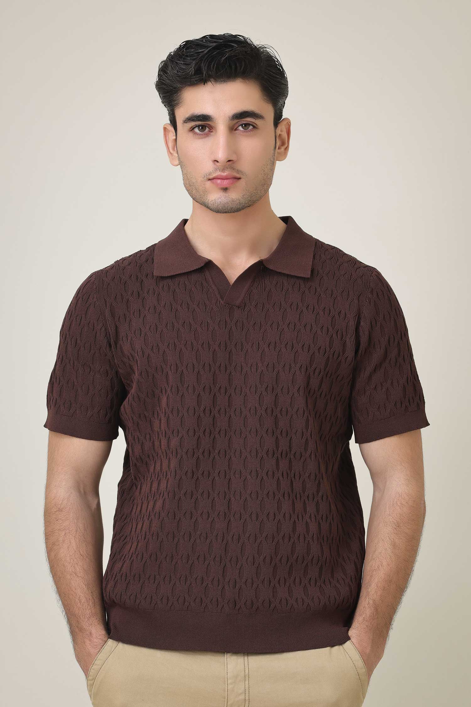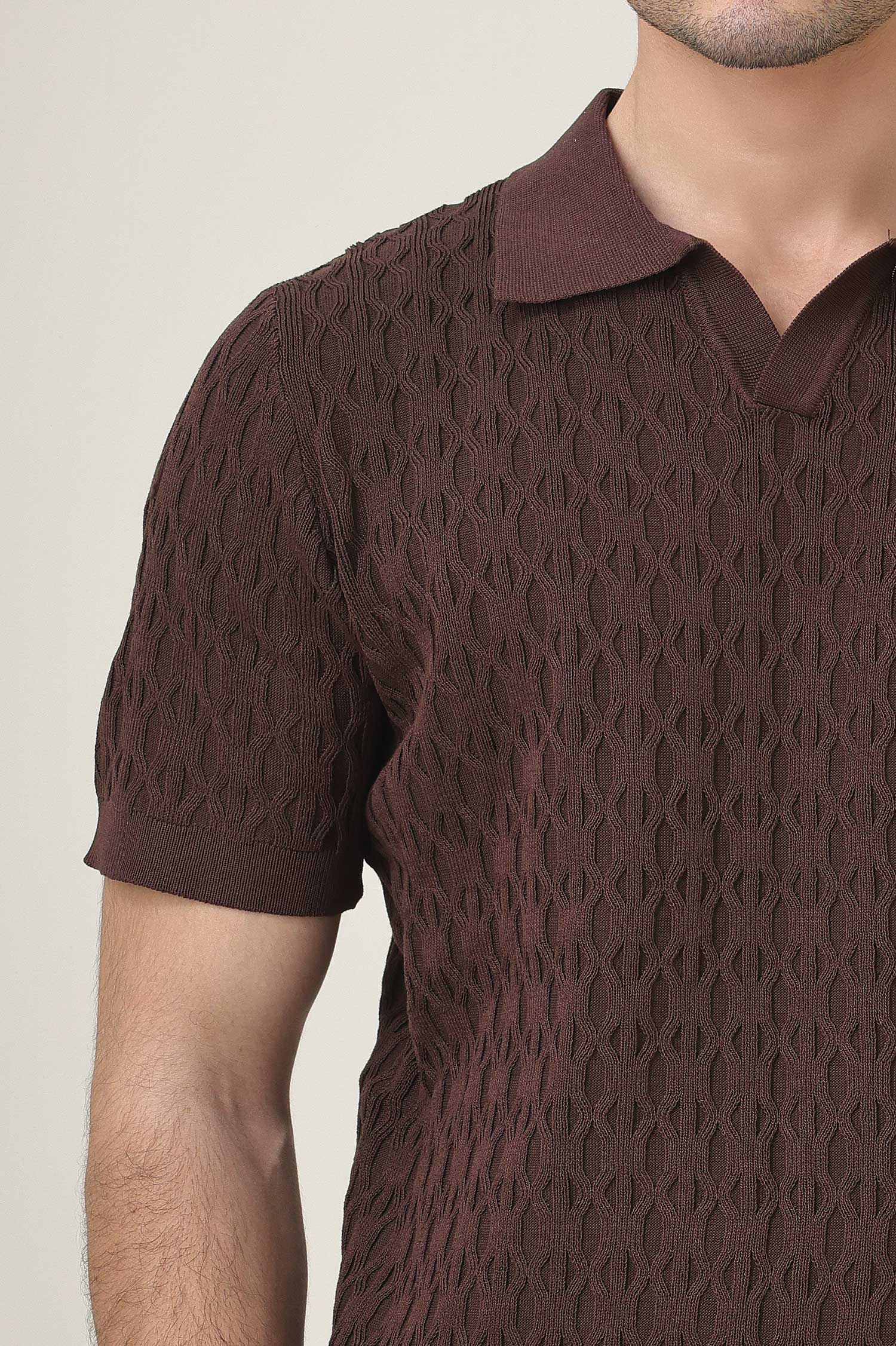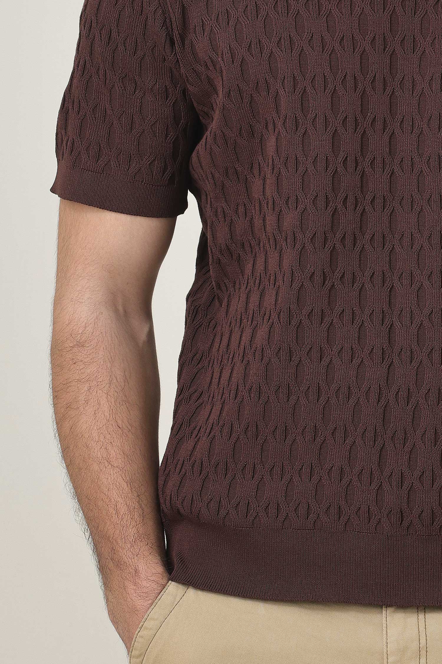 Elevate your everyday with this textured knit polo, designed in a wave-like tactile surface.