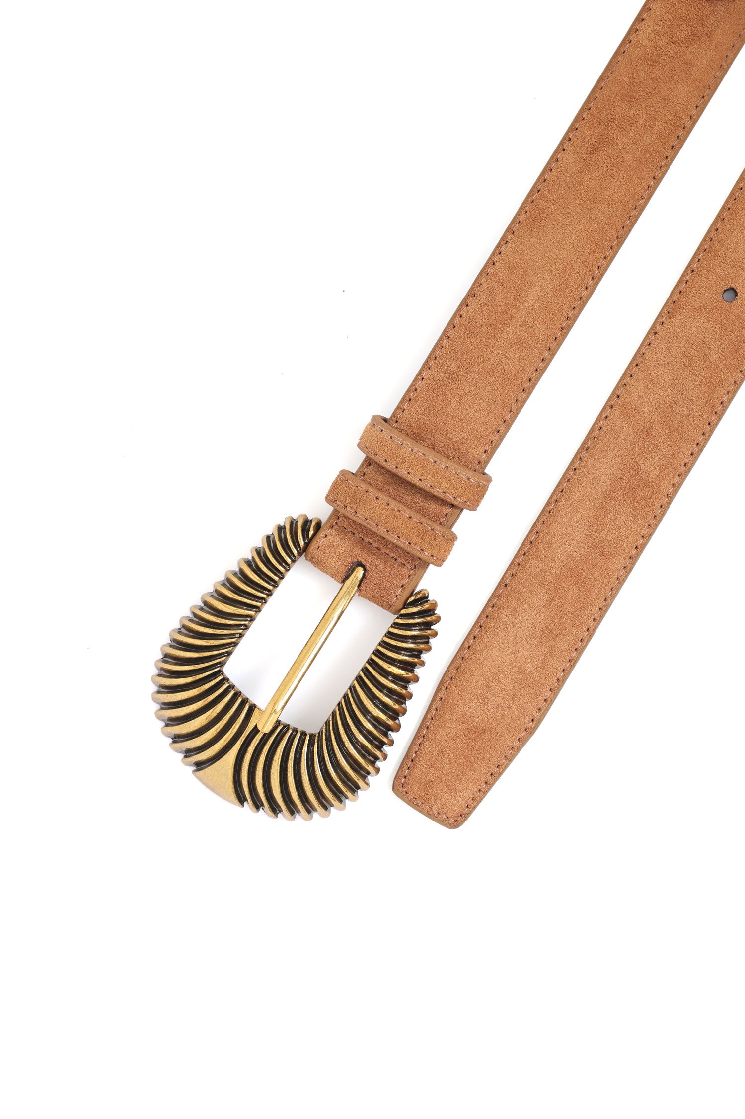 Sculpted belt with ribbed gold buckle inspired by vintage motifs.