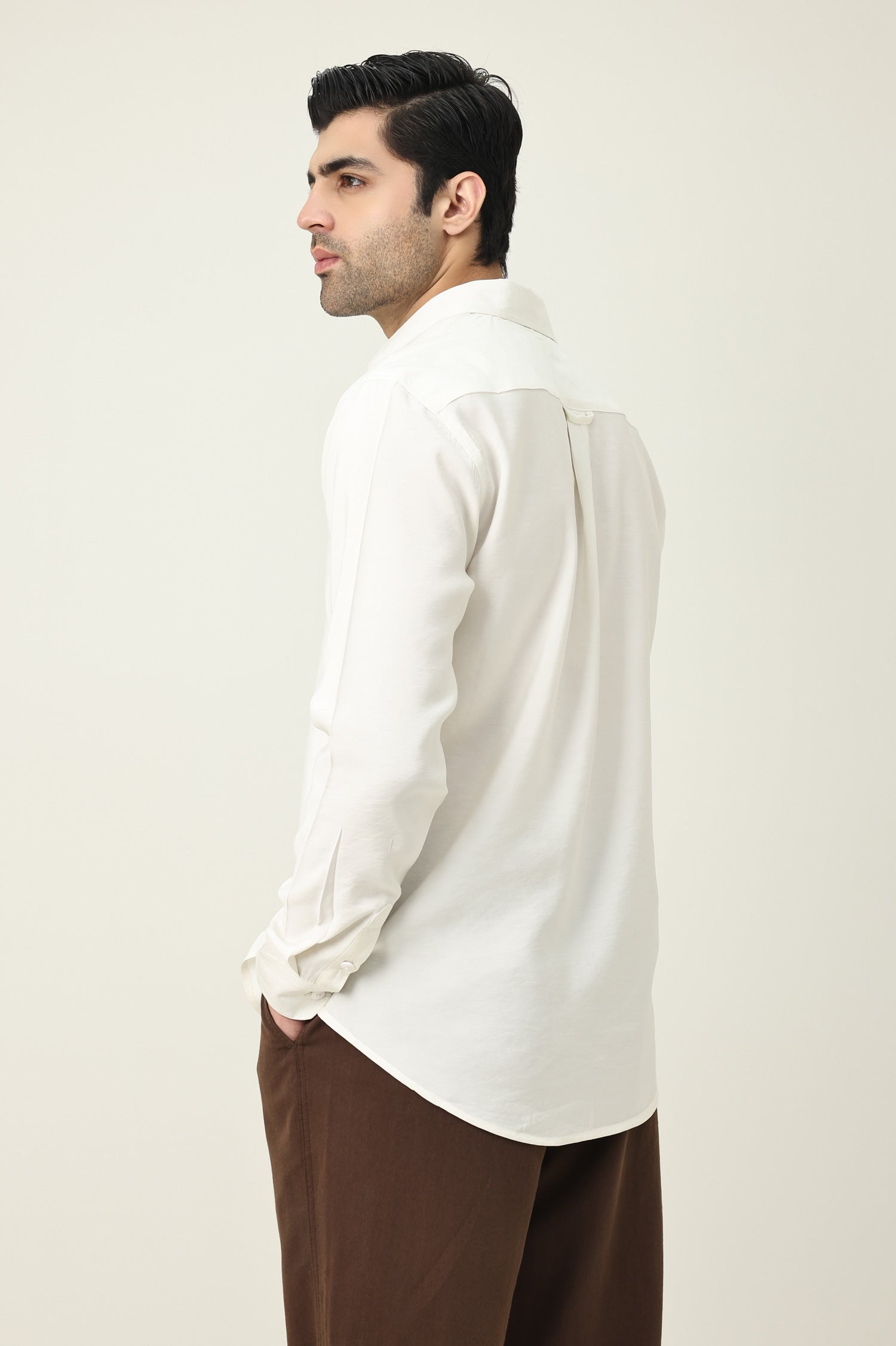 Structured fit maintains a clean and confident profile.