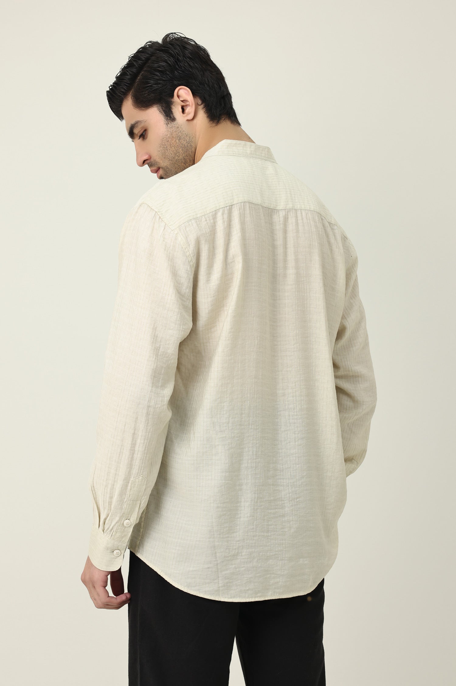RAVELLO TEXTURED BAND COLLAR SHIRT-BEIGE