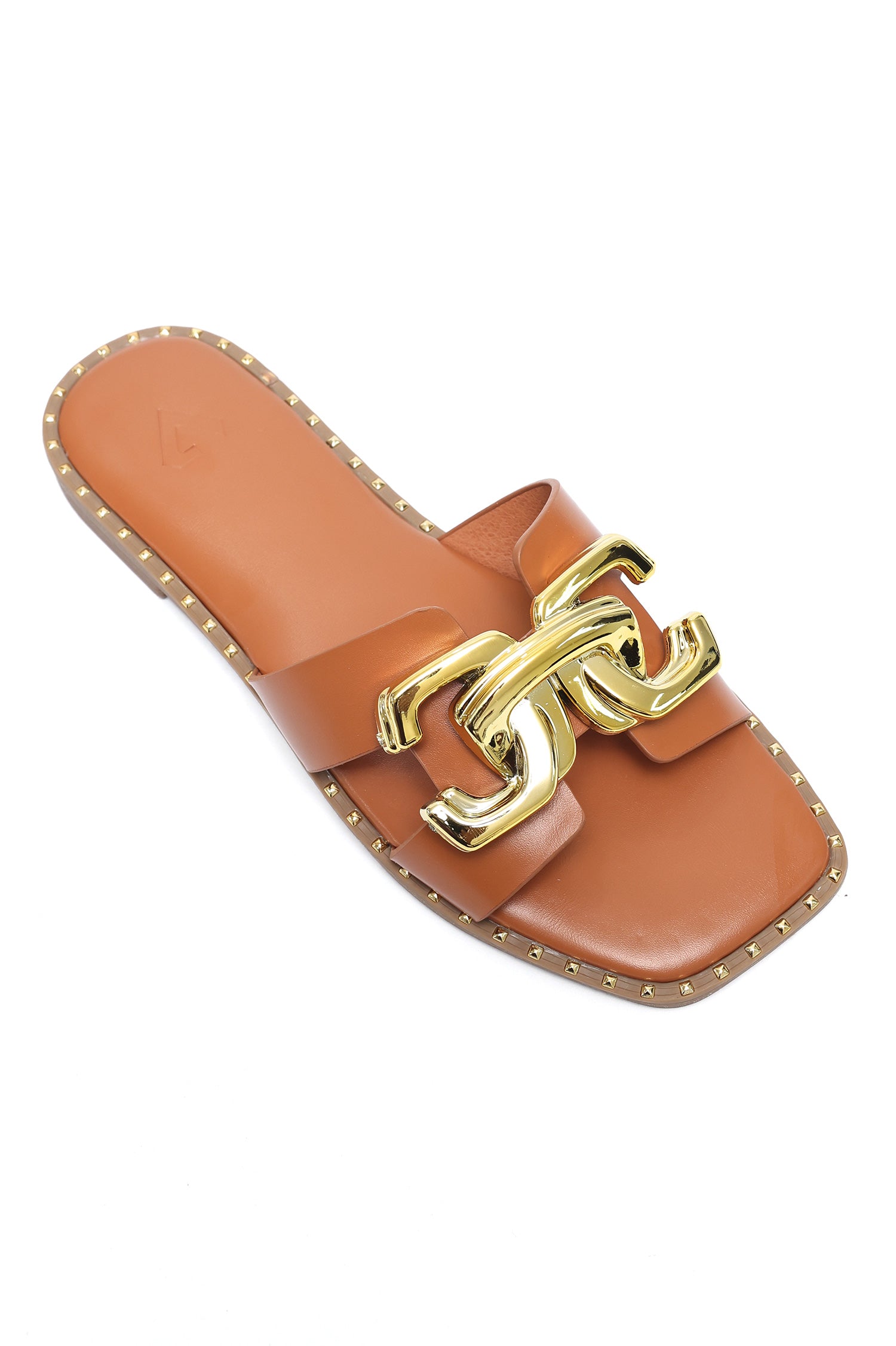 CITY CHIC BUCKLE SLIDES-CAMEL