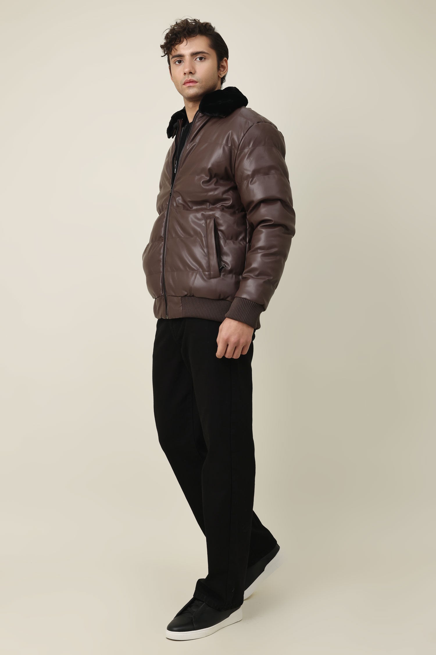FUR COLLAR AVIATOR PUFFER-COFFEE
