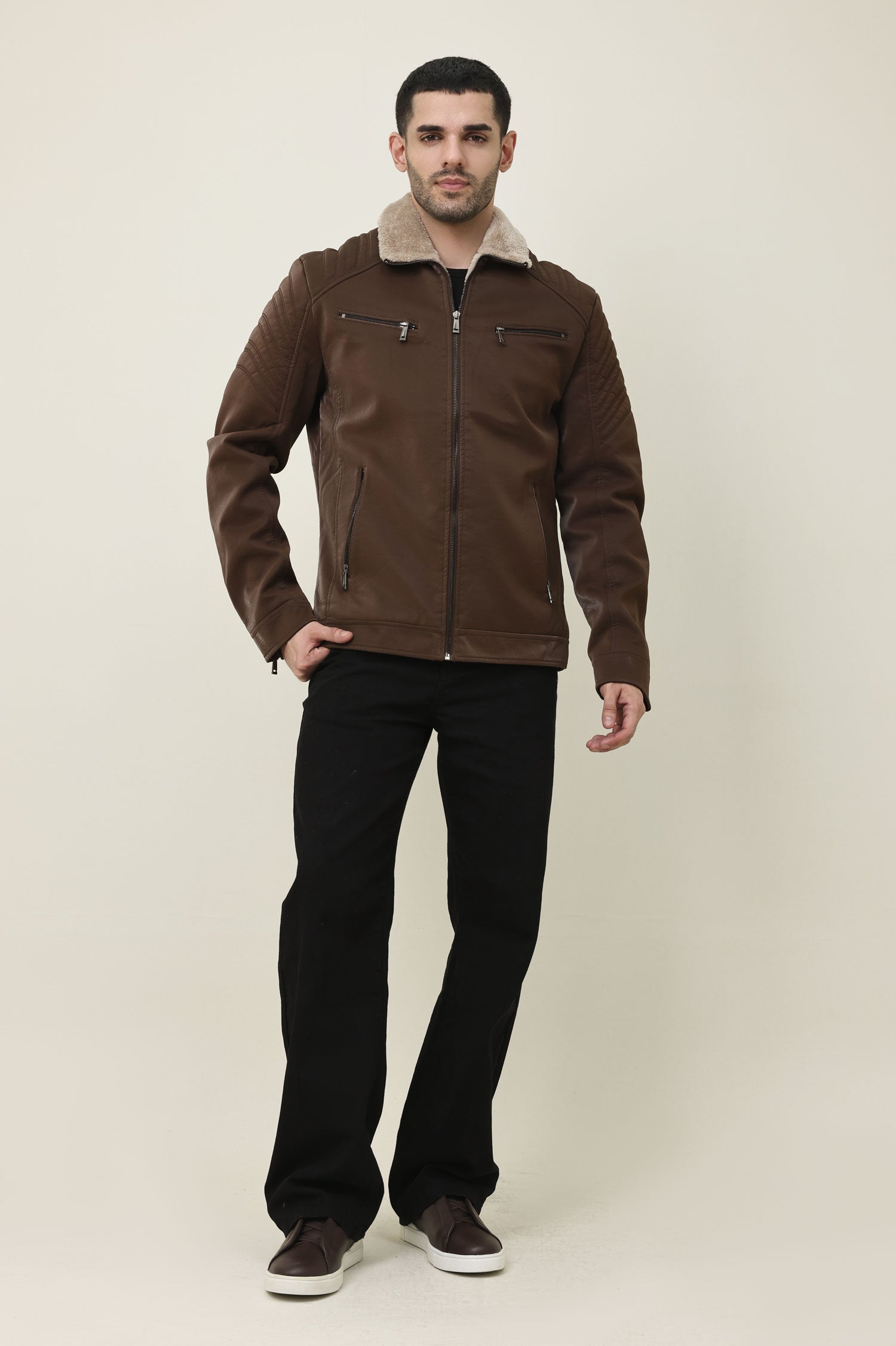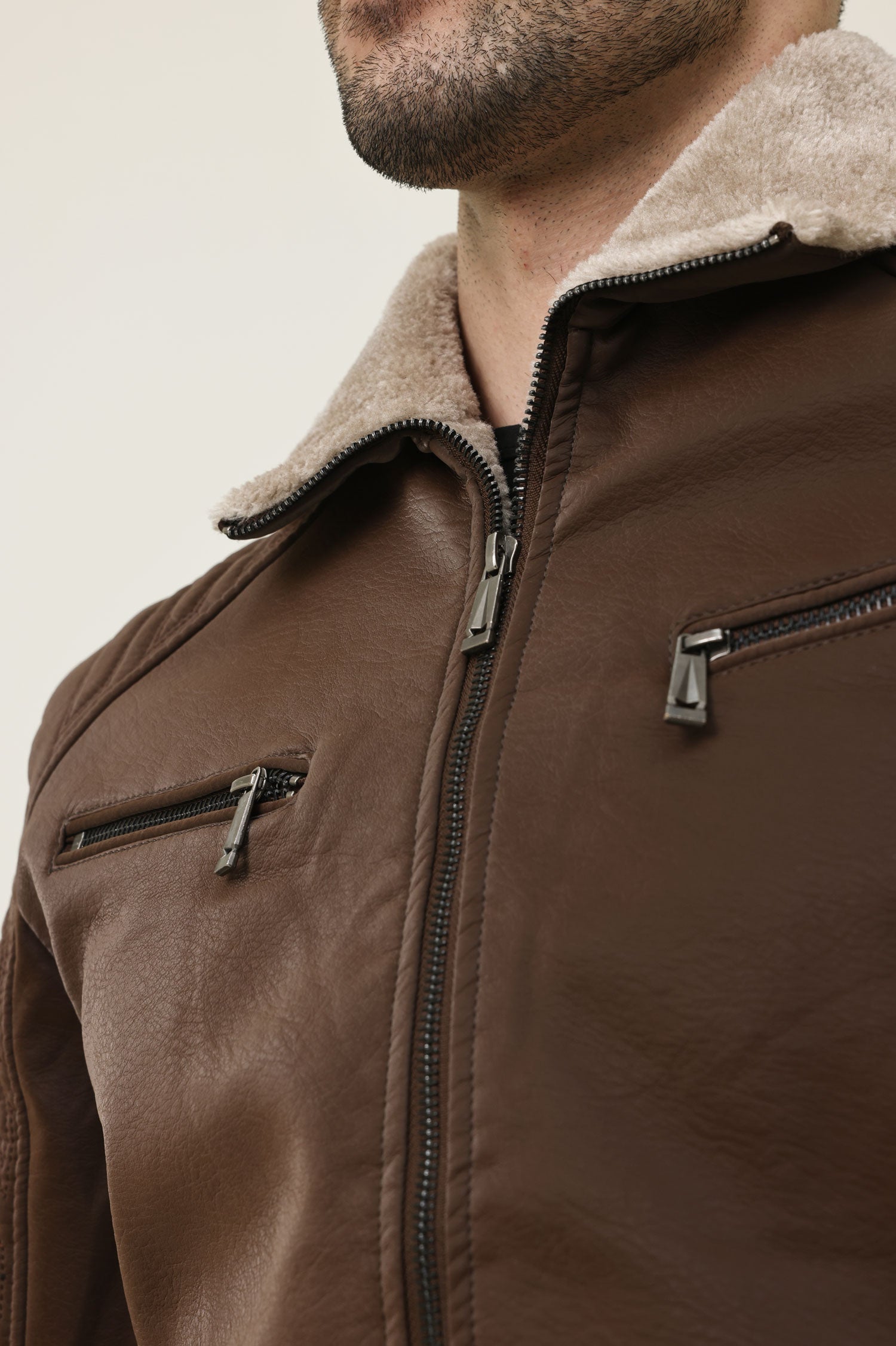 FLEECE MOTO JACKET-COFFEE