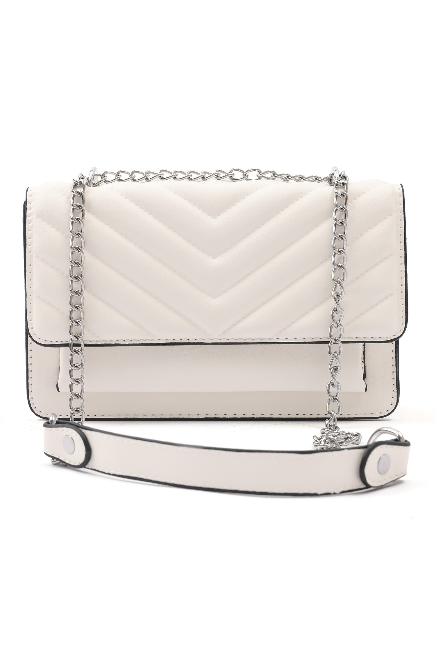 Minimalist shoulder bag. Chain strap. Magnetic clasp closure.