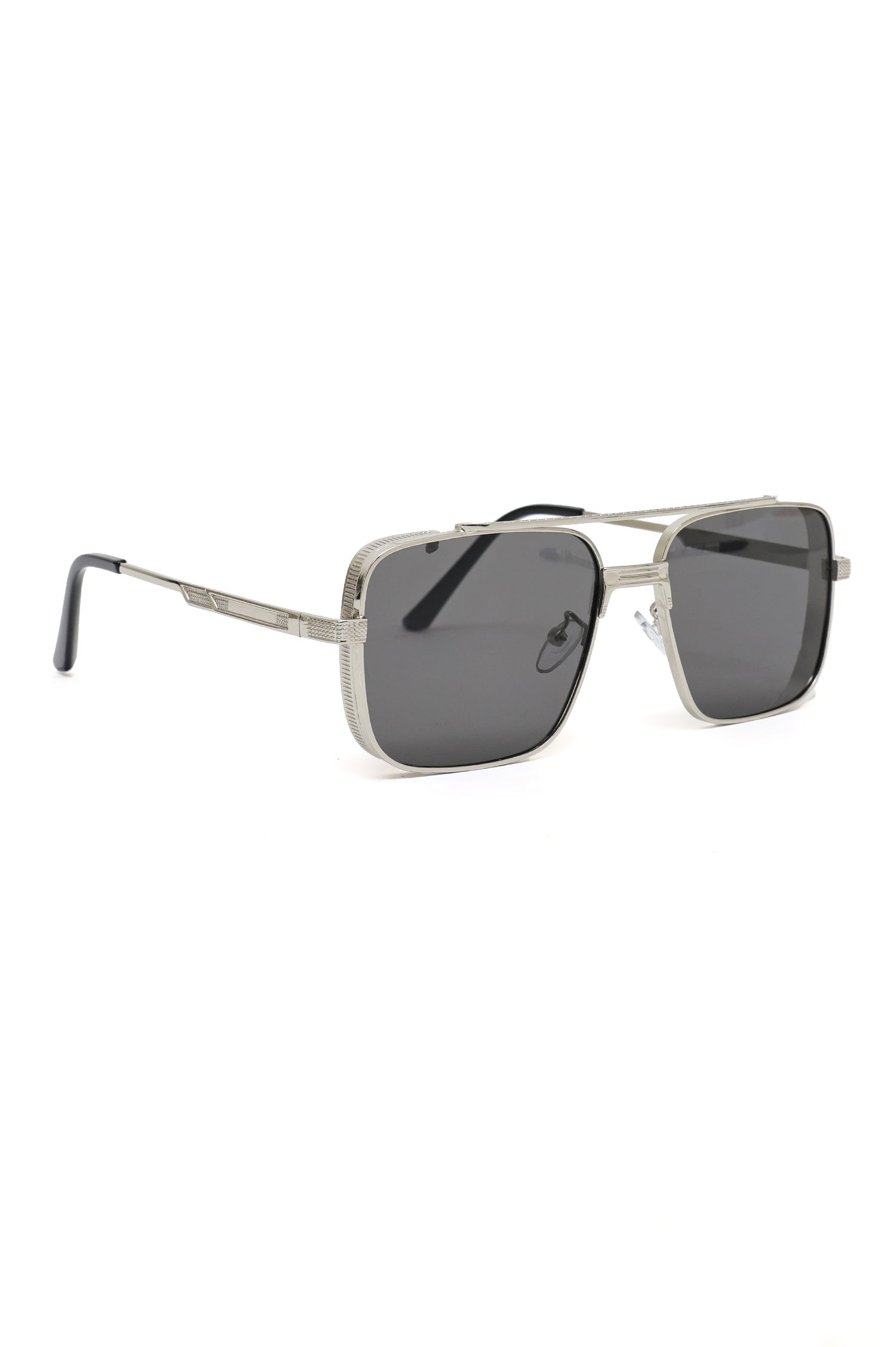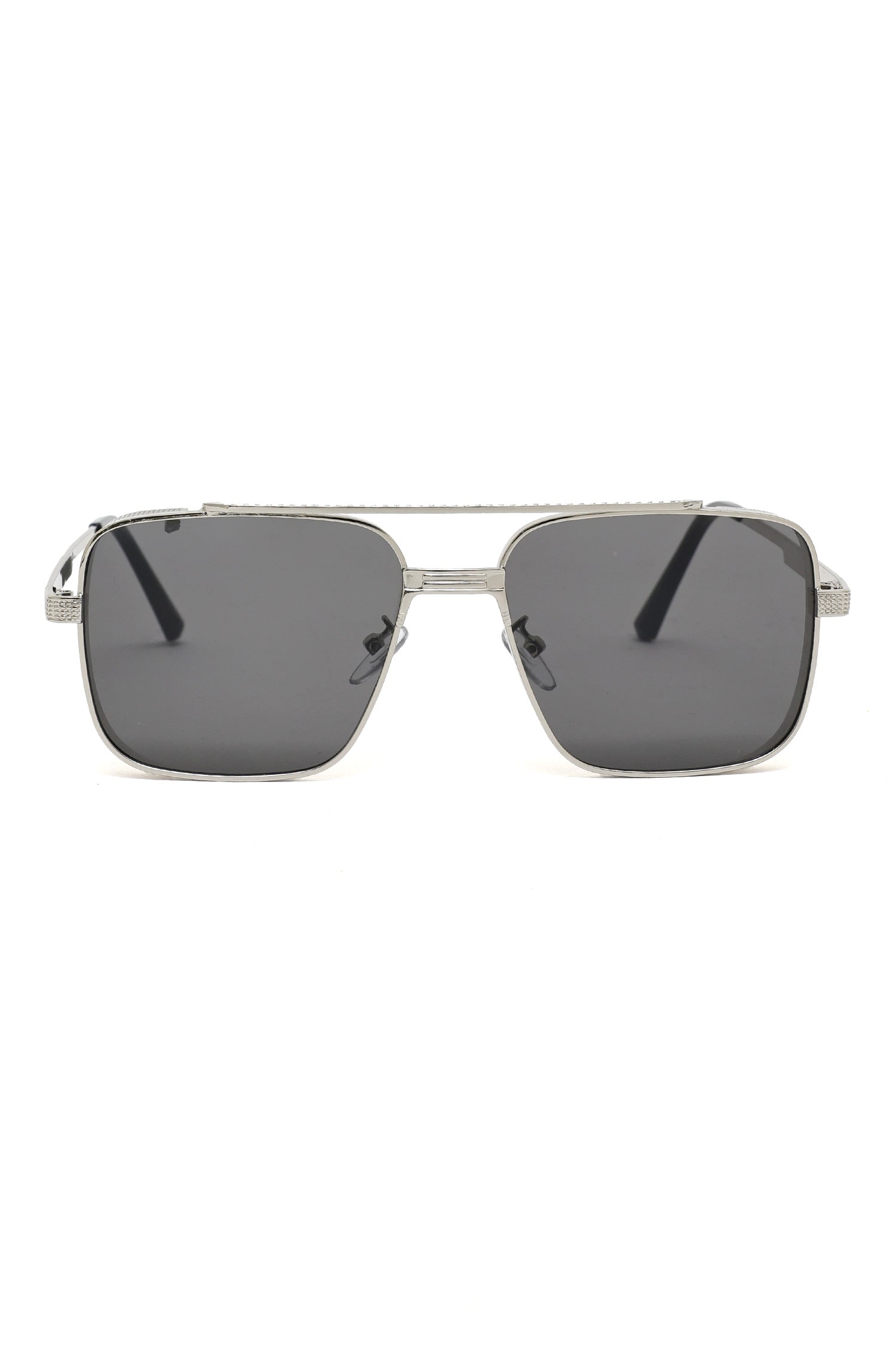 Flat-top lens construction with engraved metallic edges and defined side architecture, built for strong silhouettes and refined attitude.