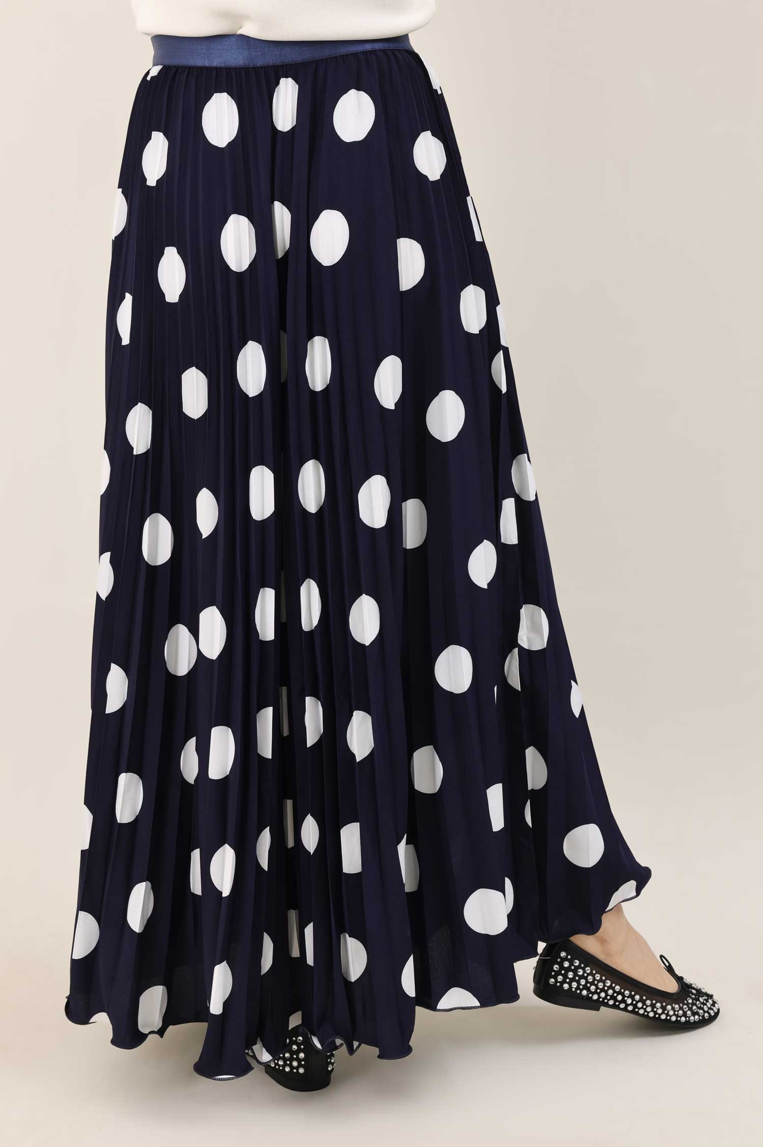 Elevate your wardrobe with this vibrant pleated midi skirt, adorned in bold polka dots. The fluid accordion pleats move with every step, creating graceful motion. Designed with a flattering waistband and modern midi length for elegant everyday twirl.