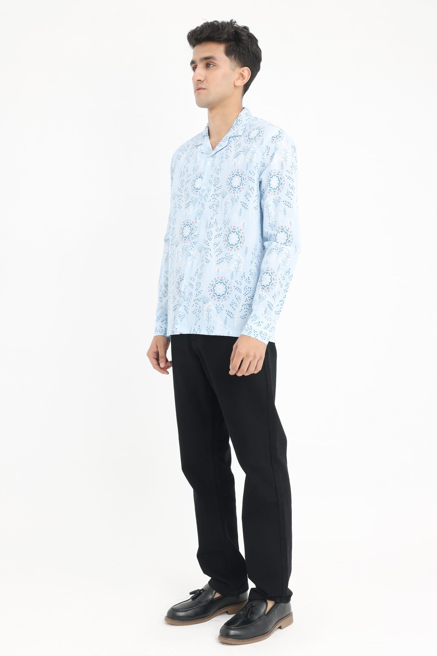 Crafted from a soft cotton-linen blend, the Floral Print Relaxed Shirt offers a comfortable and breathable fit. The mid-weight fabric ensures a cozy feel, while the delicate floral pattern adds a refined touch to the overall design. Featuring an open collar and button-down closure, this shirt combines style with practicality, making it a versatile addition to any wardrobe.