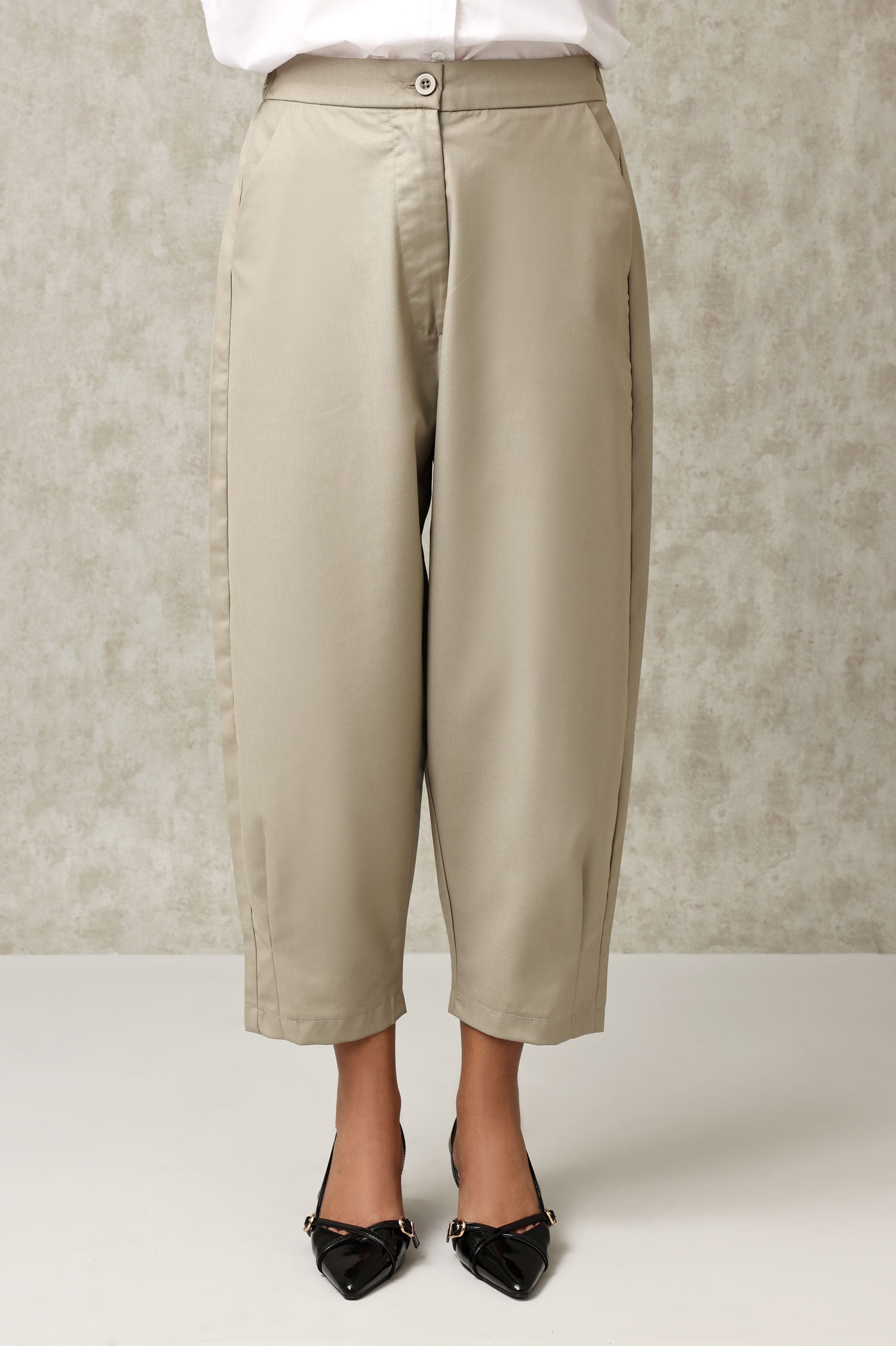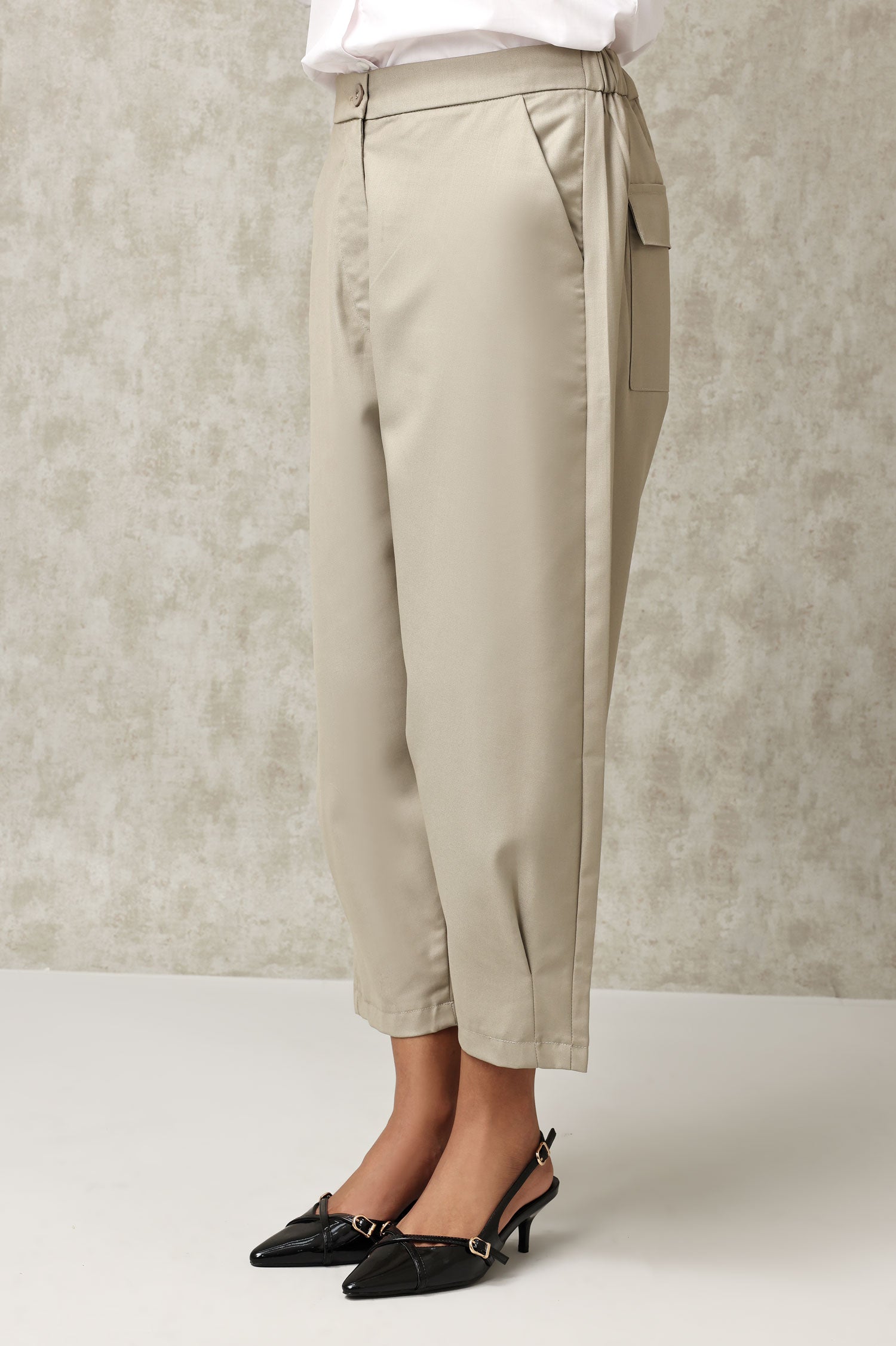 Sophisticated cropped trousers featuring a tailored fit and subtle pleat detailing for a refined silhouette. Designed with a mid-rise waistband and straight-leg cut, these versatile pants are perfect for both professional and casual ensembles.
