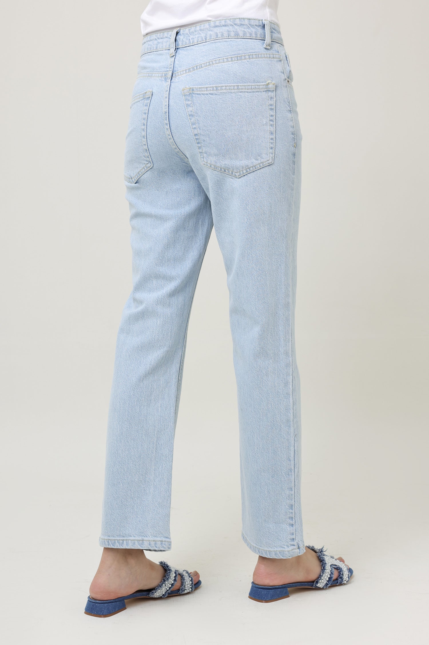 Minimalist with a twist, this pair is defined by its sleek wide-leg shape and subtle fray at the hem. Crafted in breathable denim with a clean front and timeless silhouette.