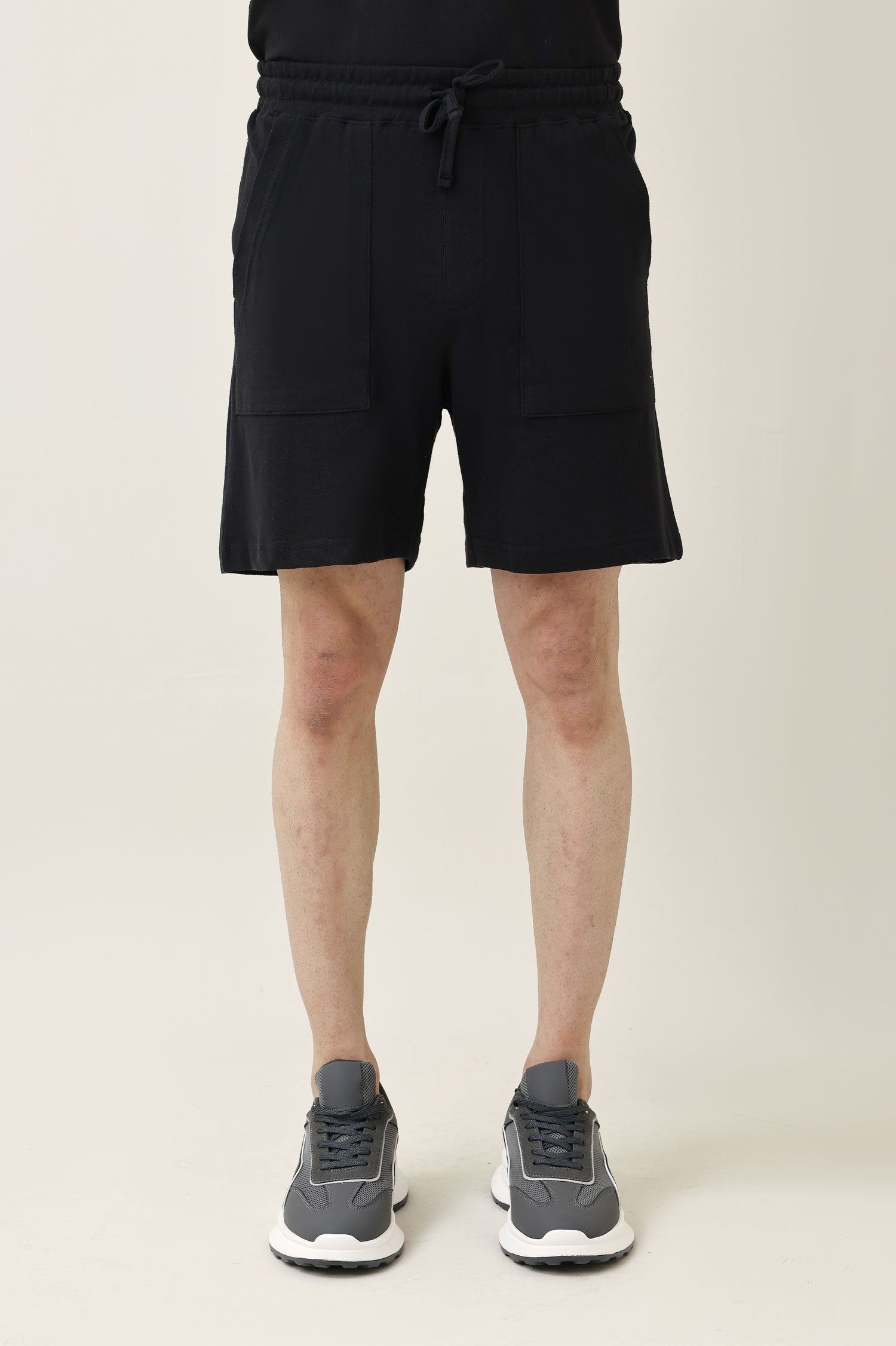 Clean athletic look built with premium knit and relaxed edge. Pockets at both hips and back for practical use. Suited for indoor ease or light training.