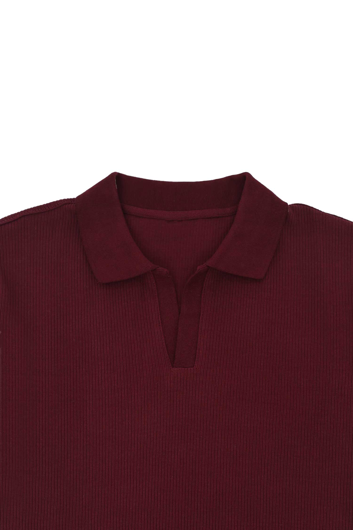 This open-collar knit polo is made from fine ribbed fabric with structured hems.