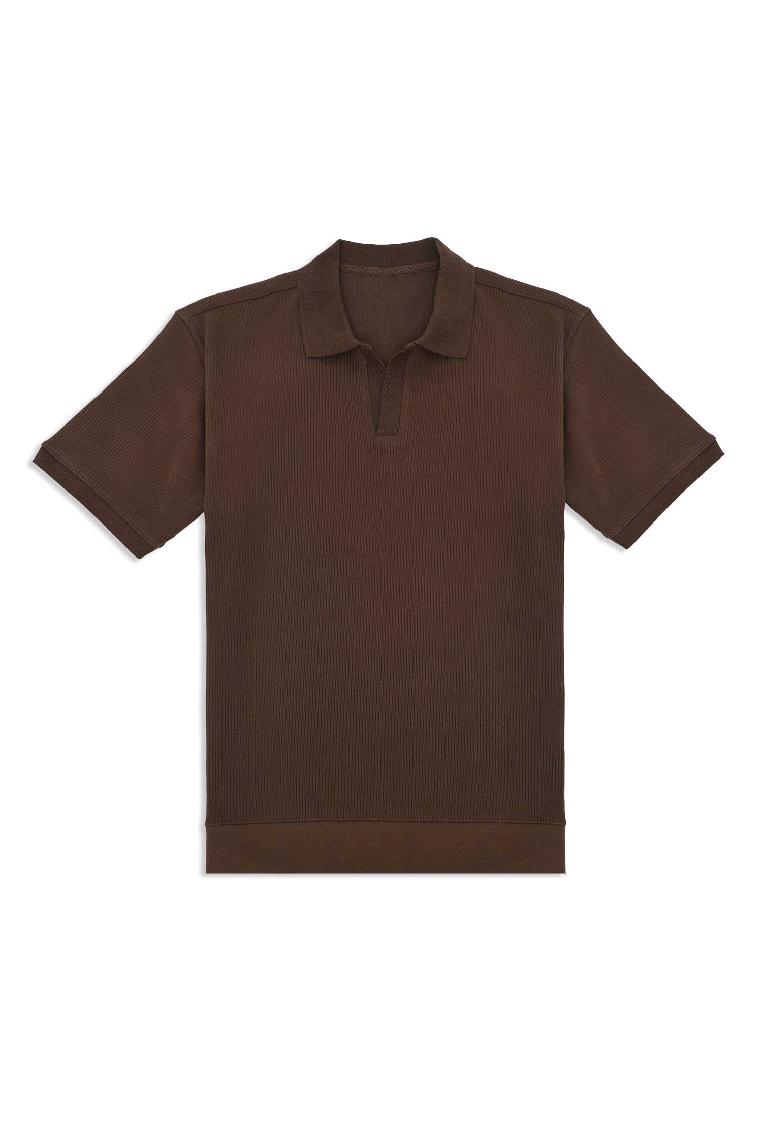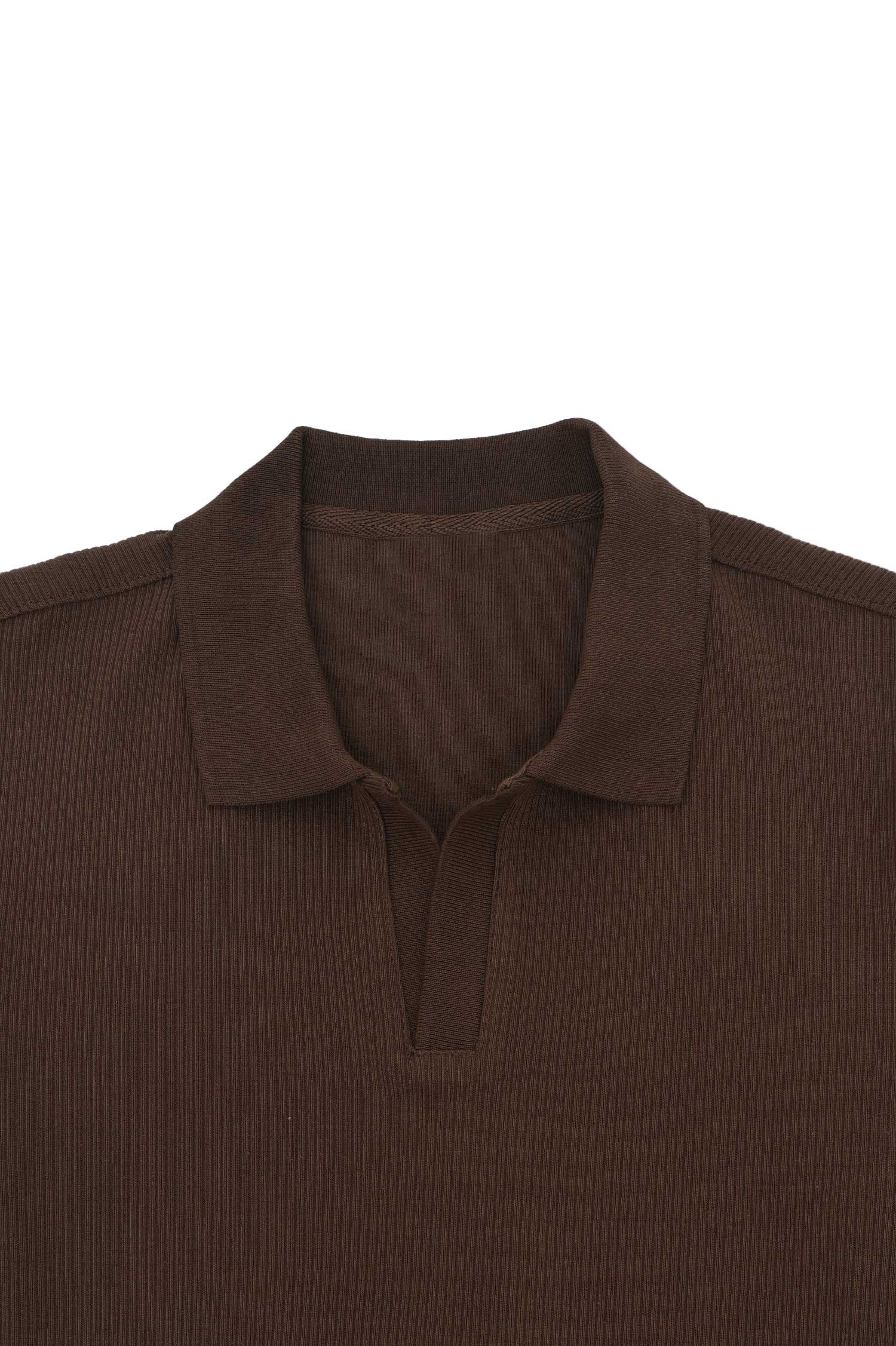 This open-collar knit polo is made from fine ribbed fabric with structured hems.