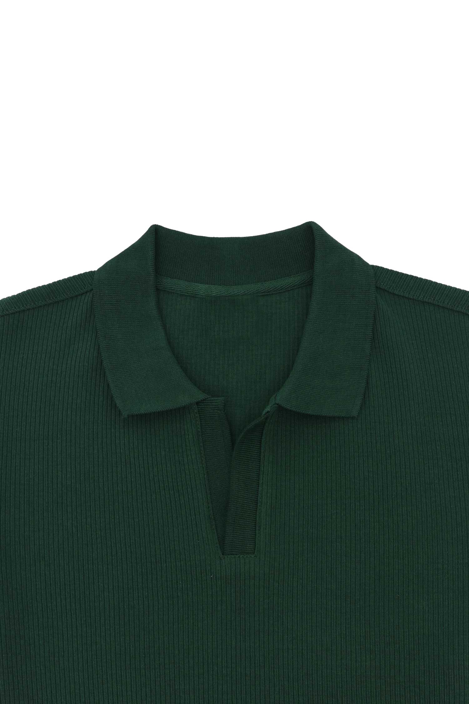 This open-collar knit polo is made from fine ribbed fabric with structured hems.