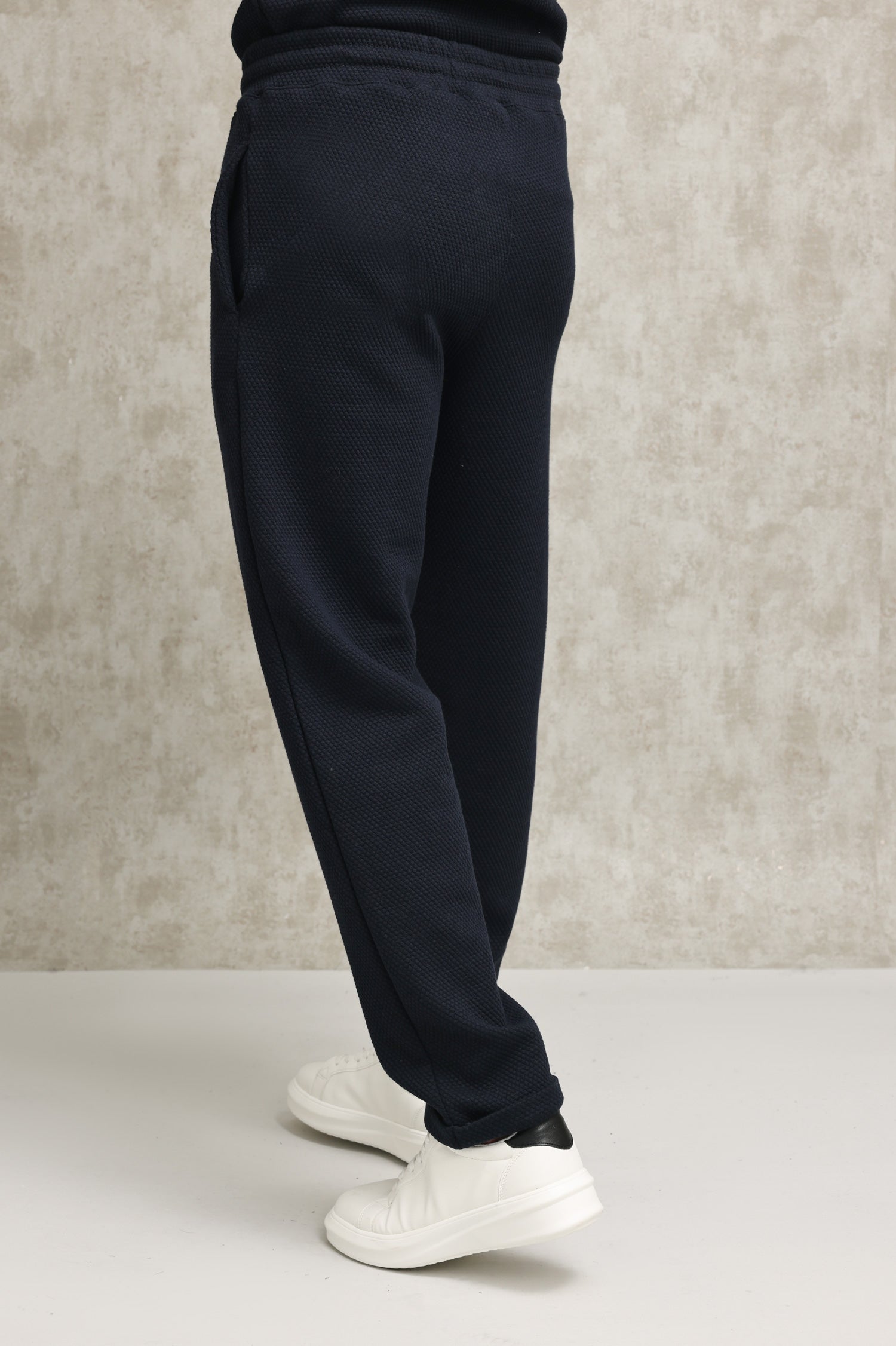 Elevate your athleisure wardrobe with these textured knit joggers. Designed with a fine-knit pattern, these joggers offer a stylish twist to a classic silhouette. Featuring a comfortable elastic waistband with an adjustable drawstring, they ensure a secure fit. Perfect for casual outings or lounging, these joggers provide unmatched comfort and a refined aesthetic.