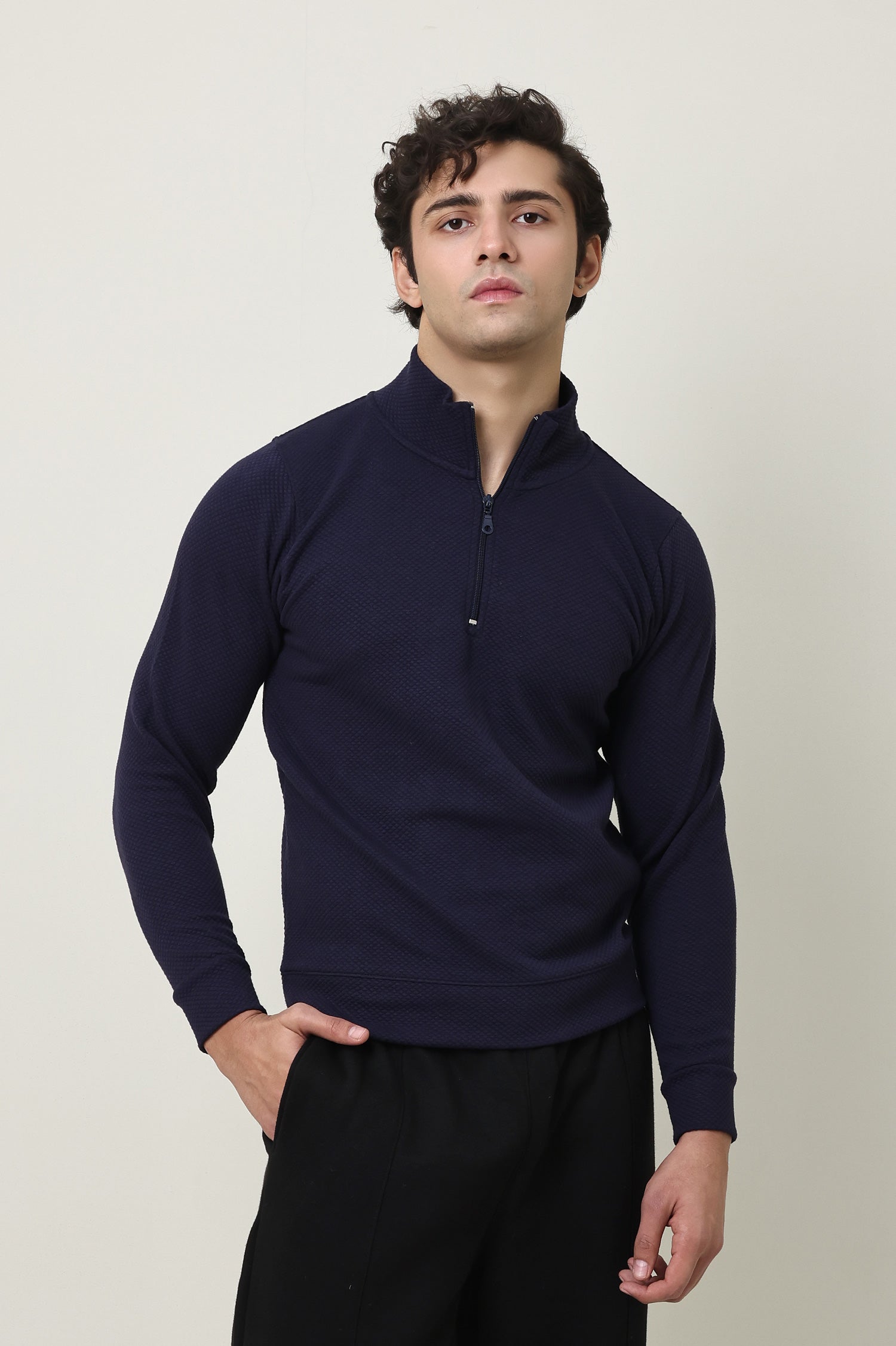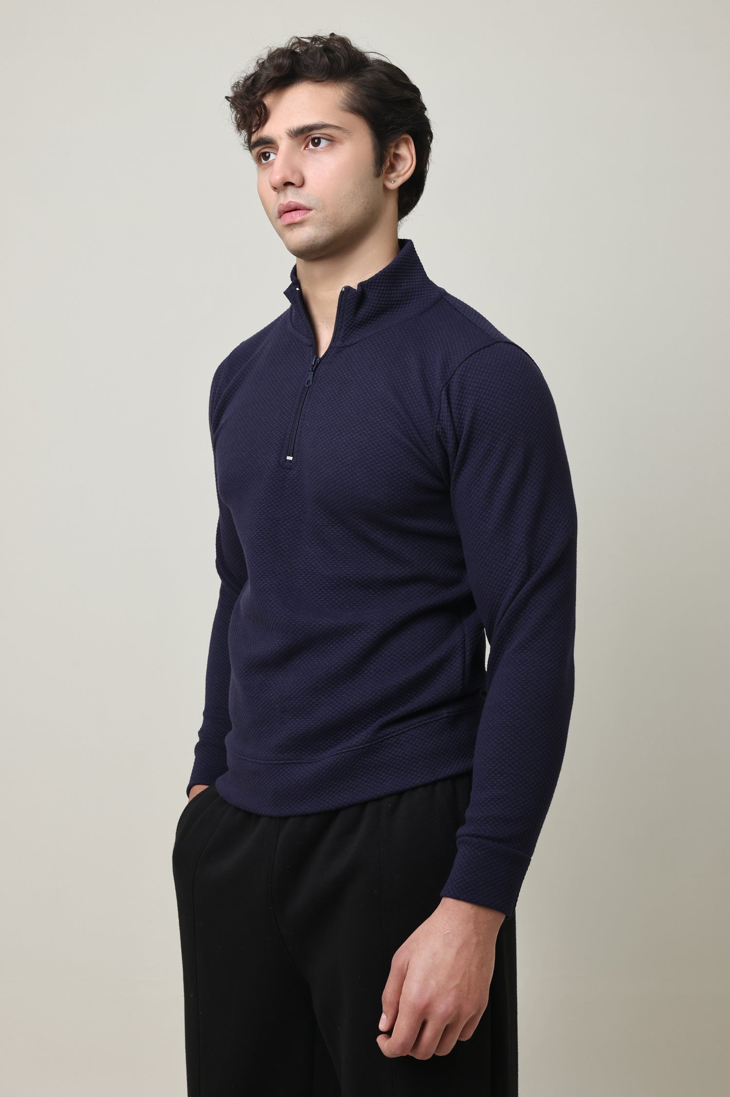 Embrace effortless sophistication with this premium textured half-zip sweatshirt. Featuring a refined waffle-knit design, it offers a rich texture and a modern fit. The half-zip neckline provides versatile styling options, while the ribbed cuffs and hem ensure a snug fit. Perfect for layering or wearing on its own, this sweatshirt seamlessly blends comfort and style for your everyday wardrobe.