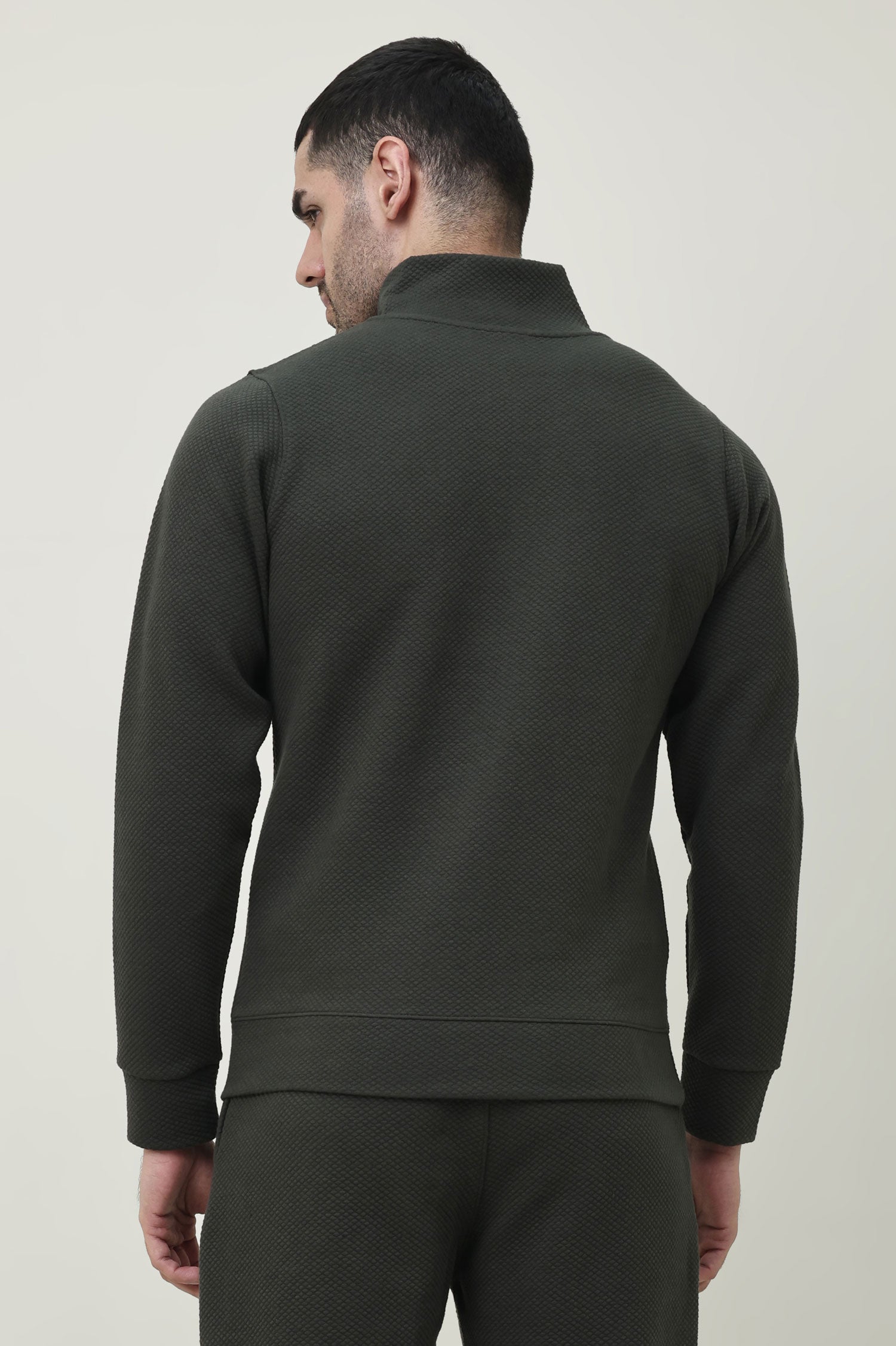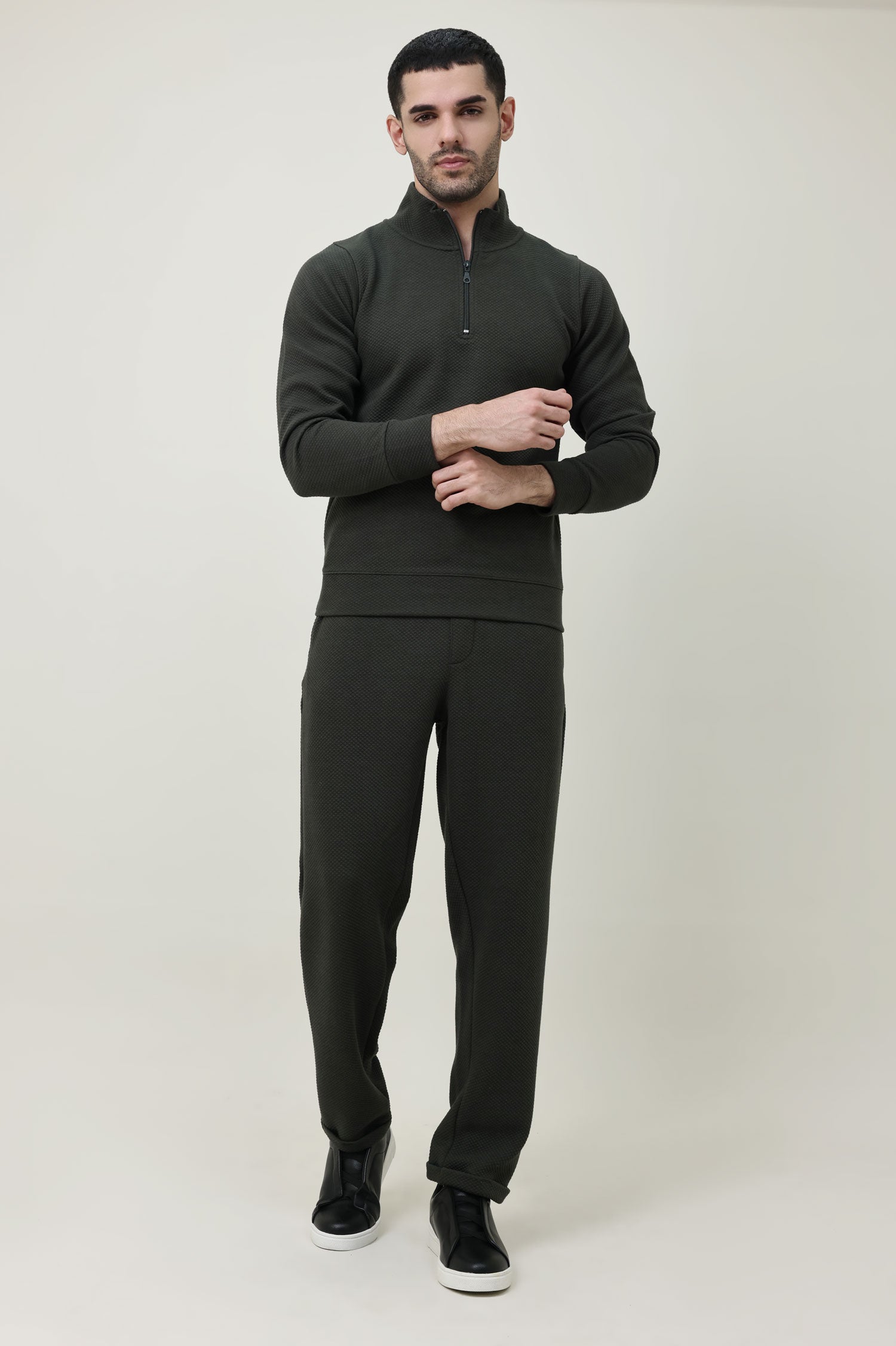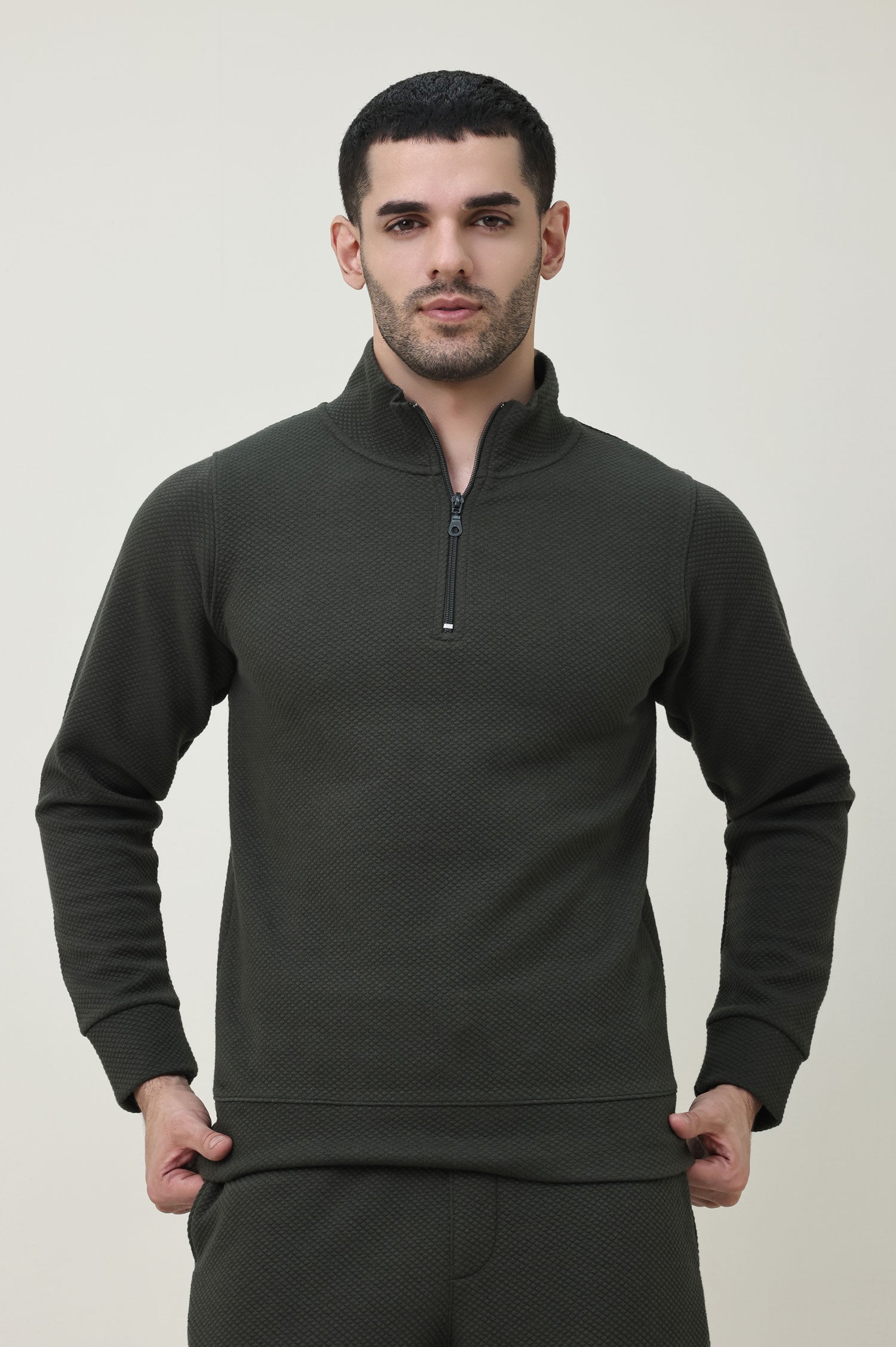 PREMIUM TEXTURED HALF-ZIP SWEATSHIRT-OLIVE