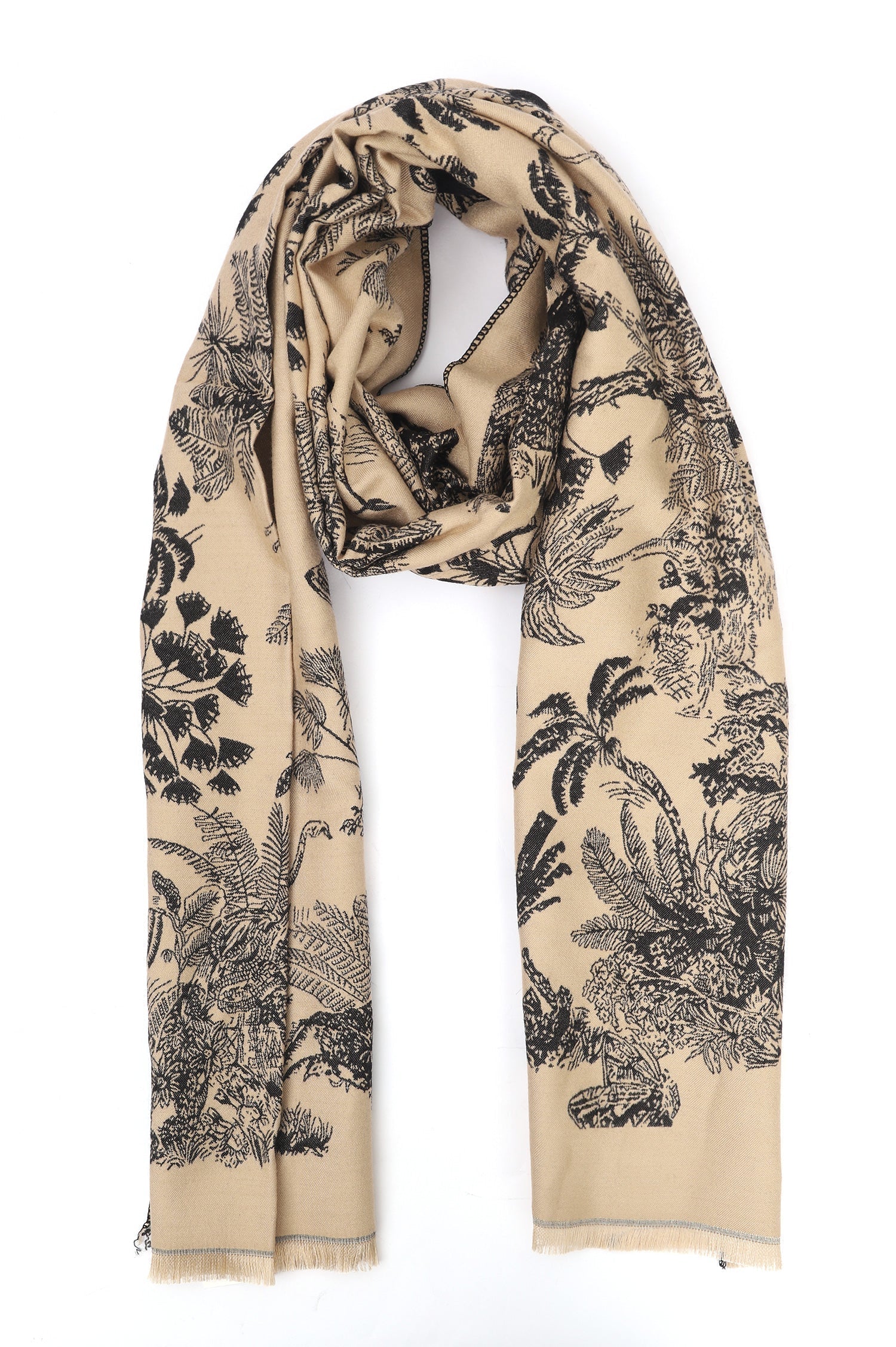 JUNGLE PRINT SHAWL-BEIGE-BLACK