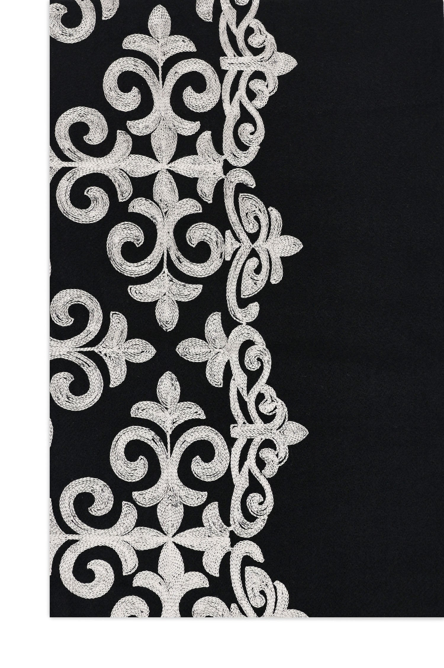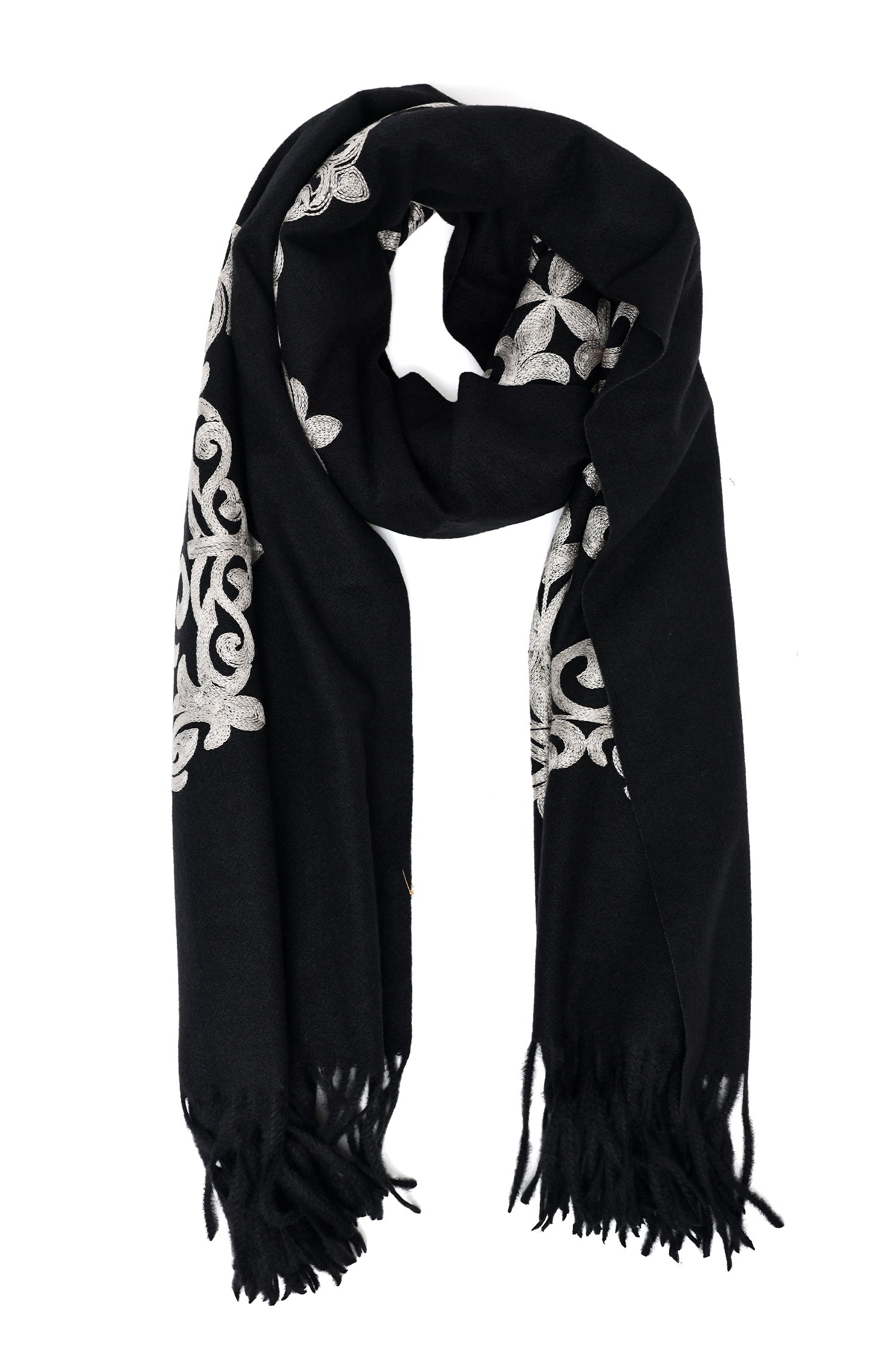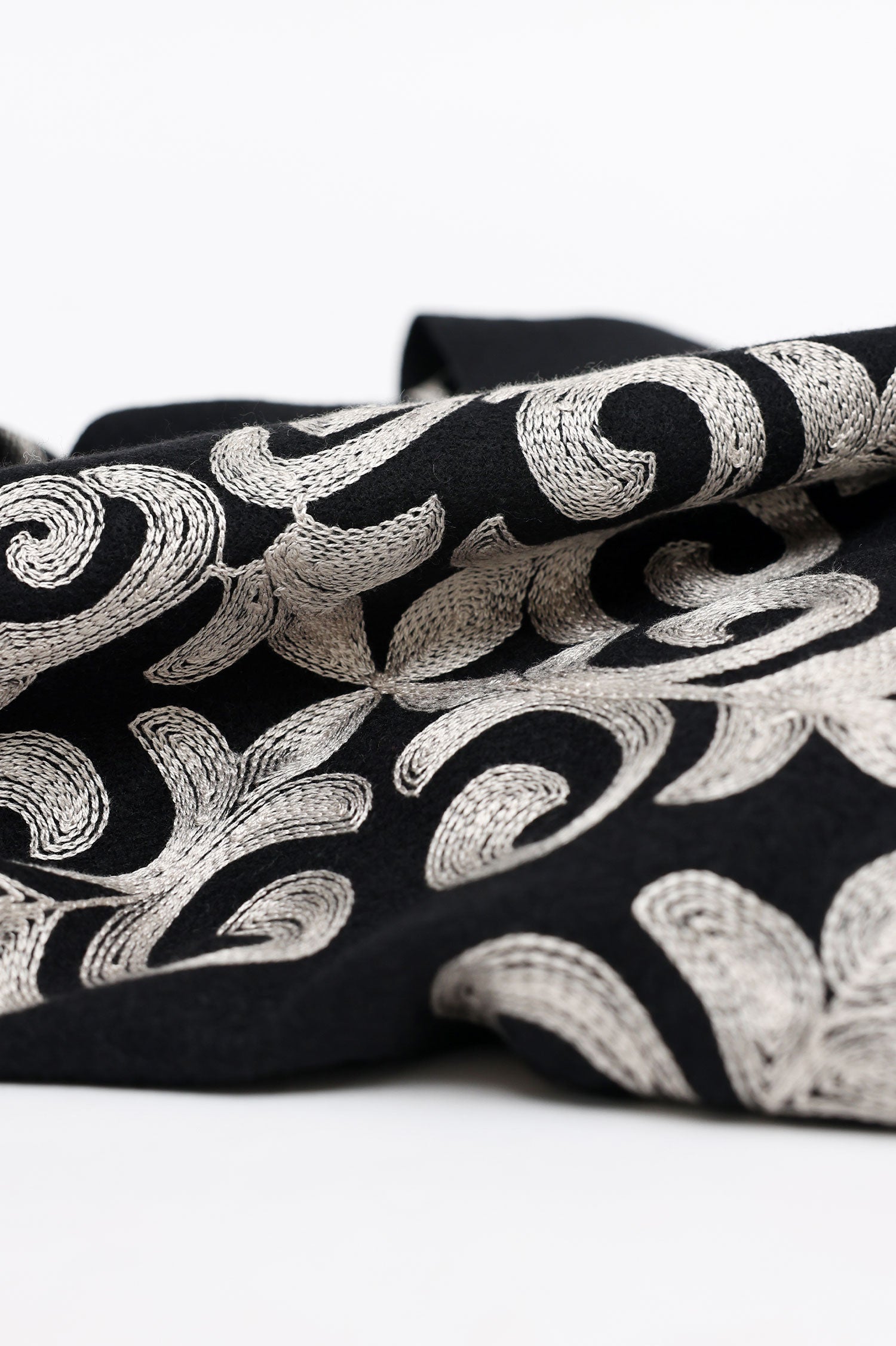 Elevate your style with this scarf, adorned with intricate baroque embroidery. Made from soft fabric, its luxurious design and timeless pattern bring sophistication and elegance to any outfit.