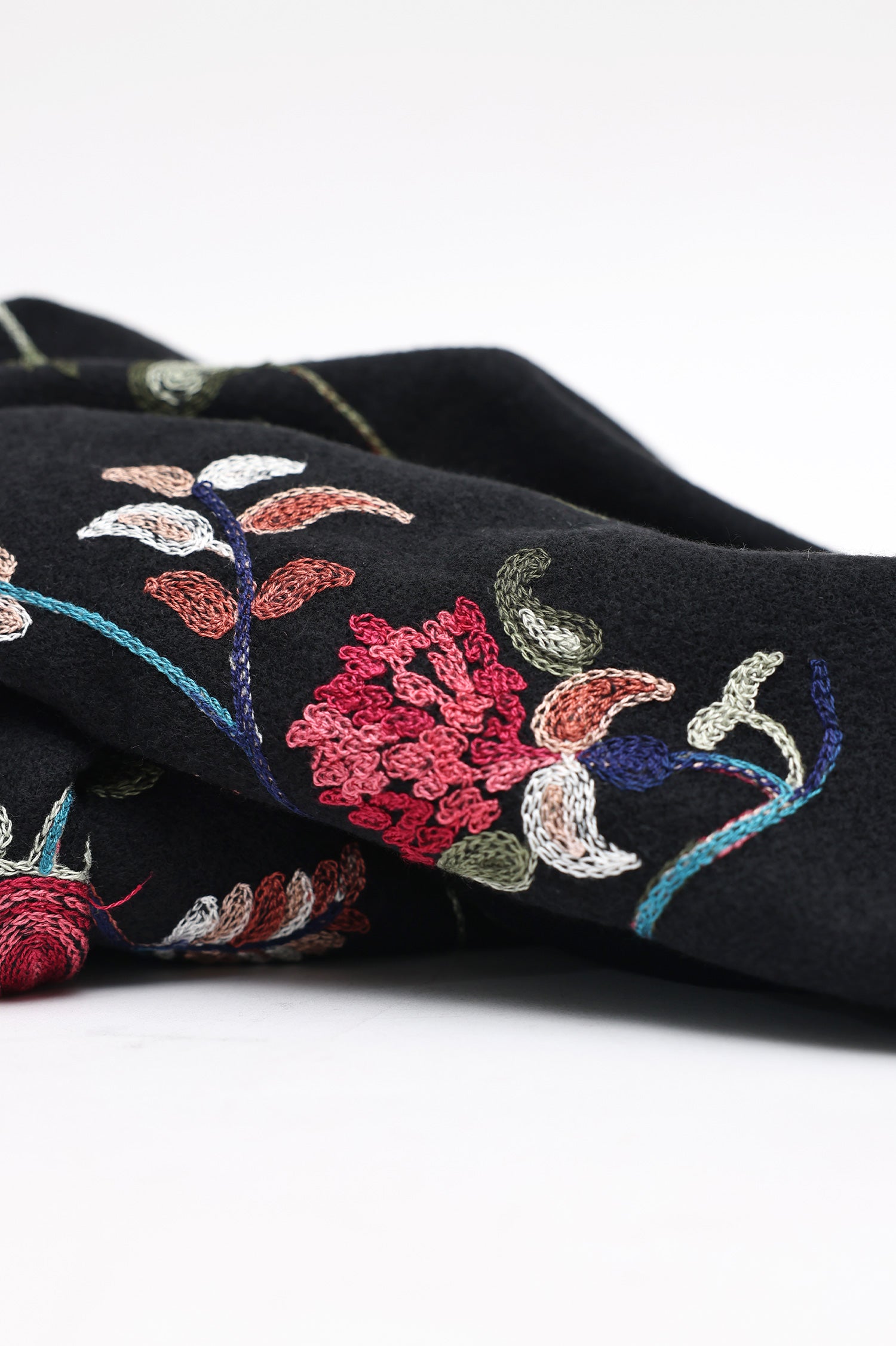 Experience elegance with this scarf featuring detailed floral embroidery and unique artistic patterns. The soft fabric ensures comfort, while the vibrant design makes it a standout accessory for any occasion.