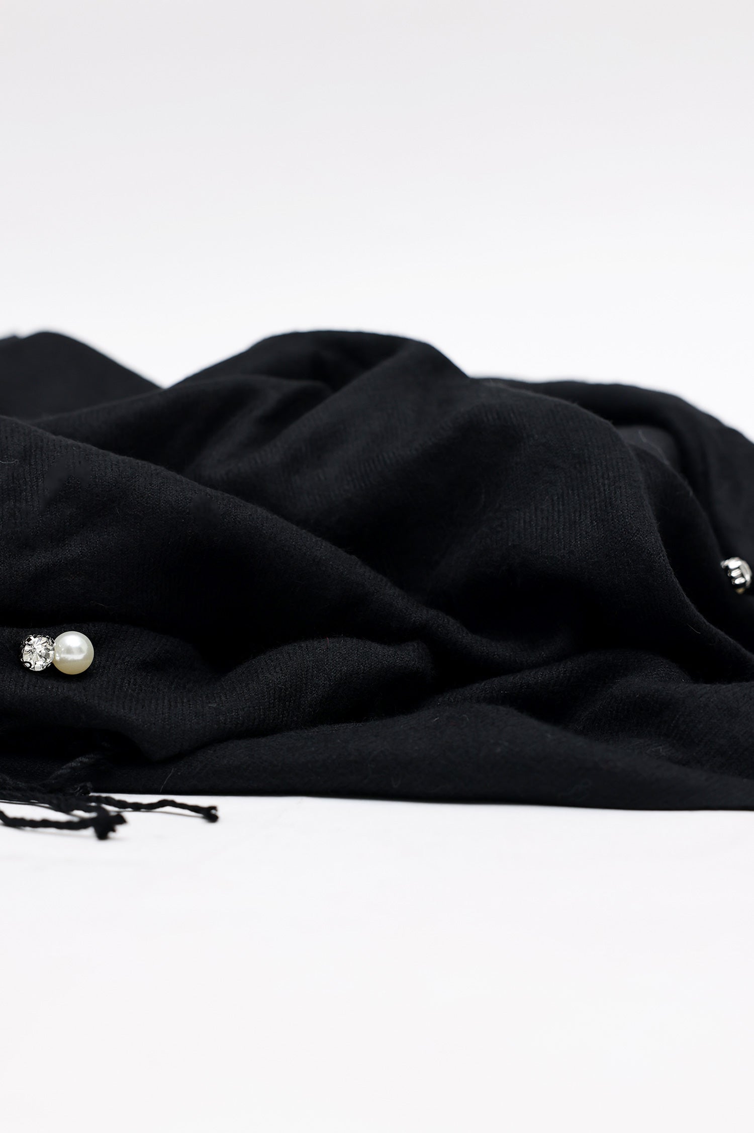 Elevate your winter wardrobe with this elegant scarf featuring delicate pearl accents and soft fringe detailing. Crafted from premium fabric, it adds a refined touch to any outfit while keeping you cozy.
