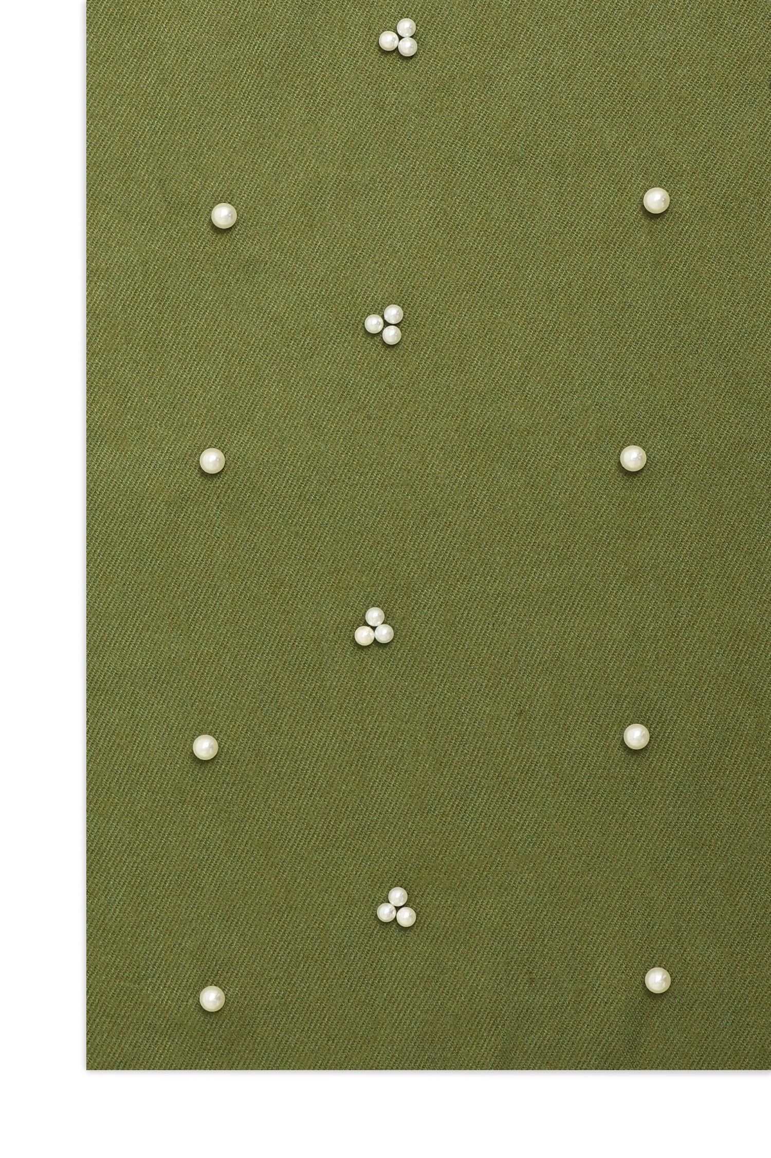 Fine sparkle from pearl and rhinestone embellishments makes this scarf quietly radiant. Delicate fringe complements the lightweight silhouette. A serene and polished accessory.