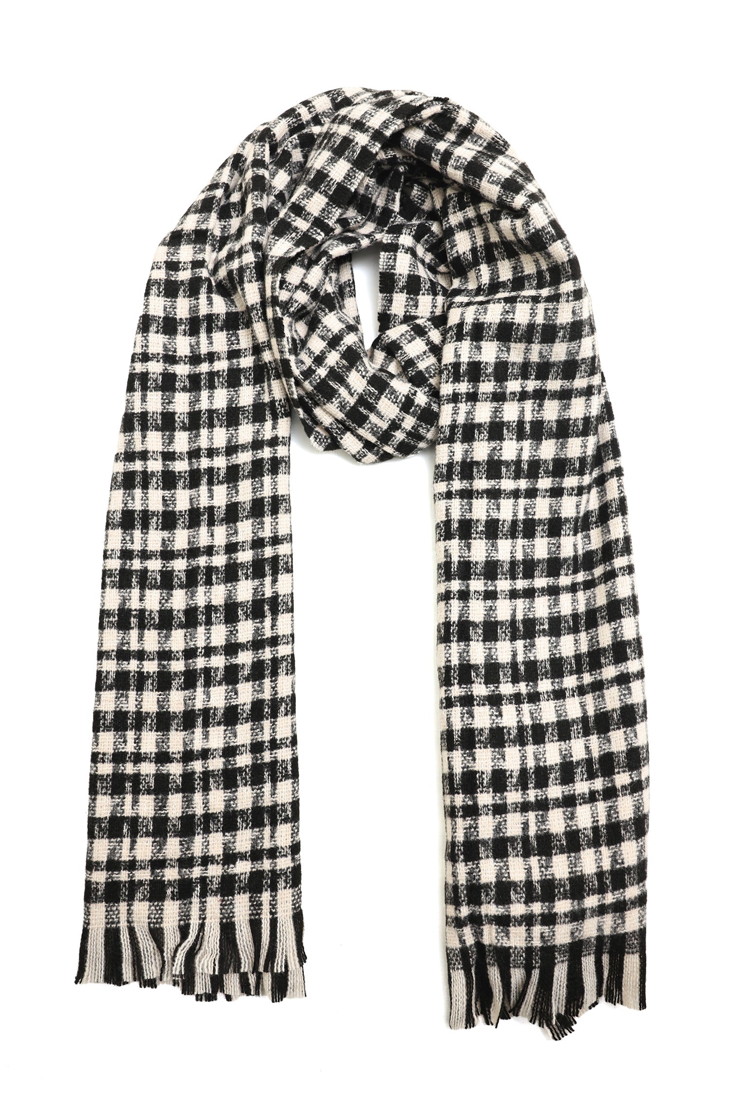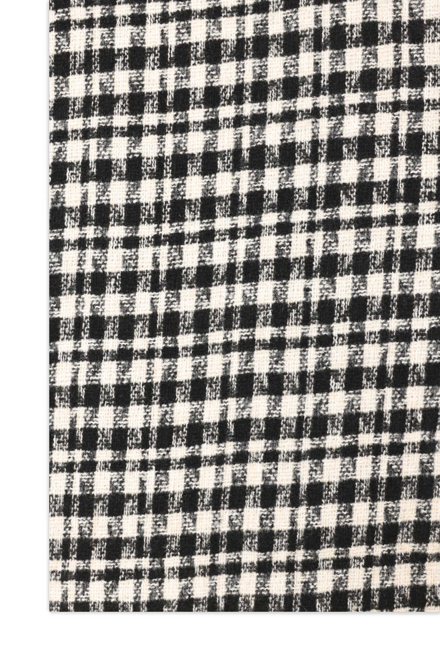 Thick-check woven fabric in dual-tone finish. Cozy texture merges utility with art. Fringed edges complete the heritage-inspired silhouette.