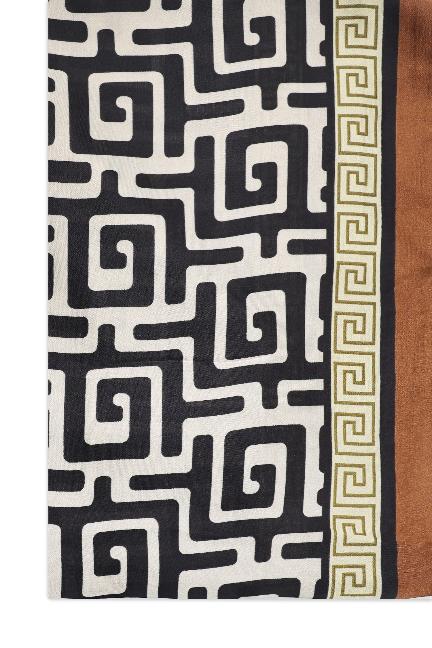 Premium silk-like textile enhances graceful drape with subtle shine. Fine woven fibers provide comfort and a sleek polished appearance. Bold linear motifs deliver contemporary luxury appeal.