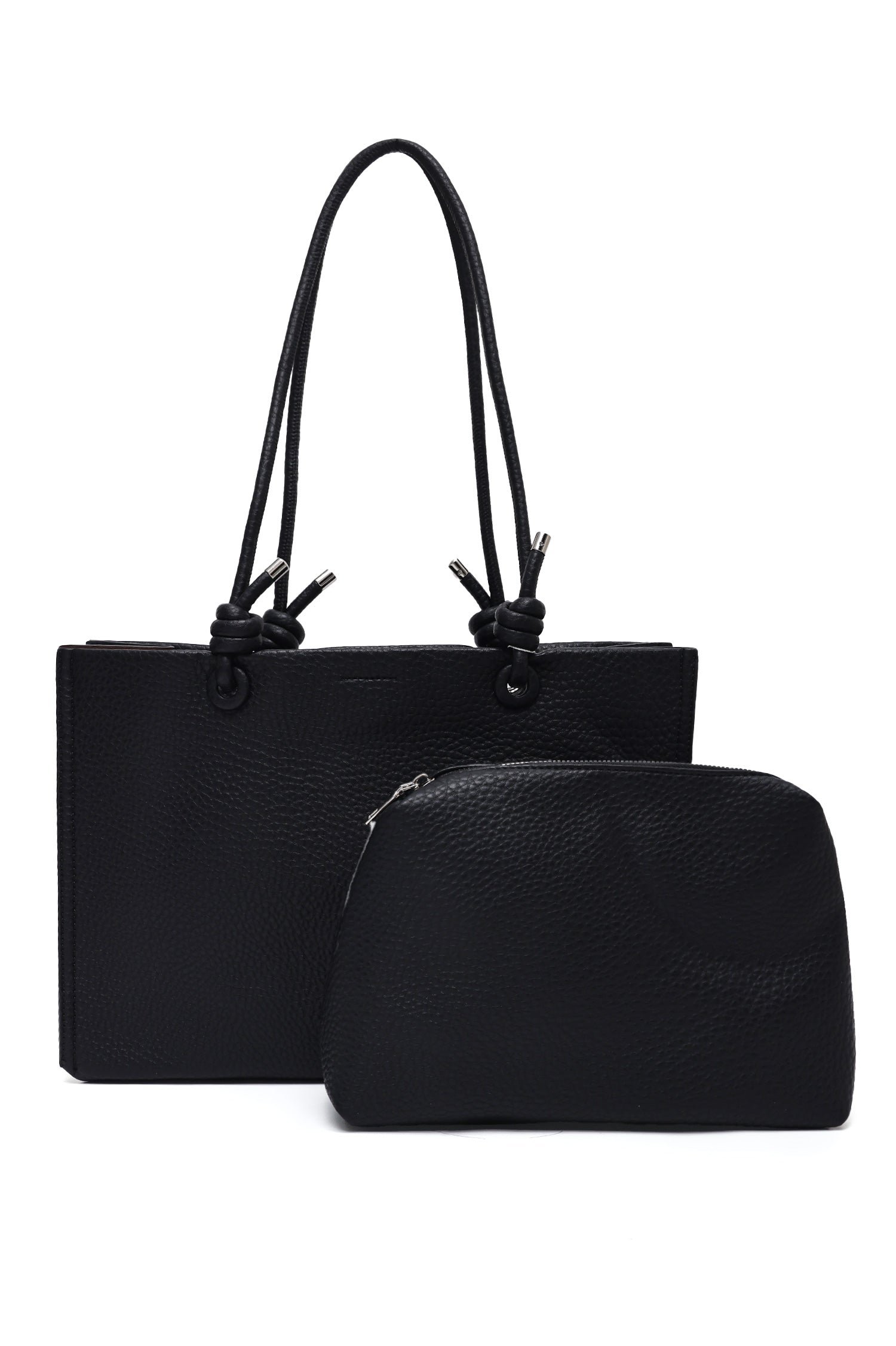 Timeless tote bag crafted from textured material, featuring elegant knotted handles for a modern touch. Spacious and versatile, ideal for everyday use or business essentials.
