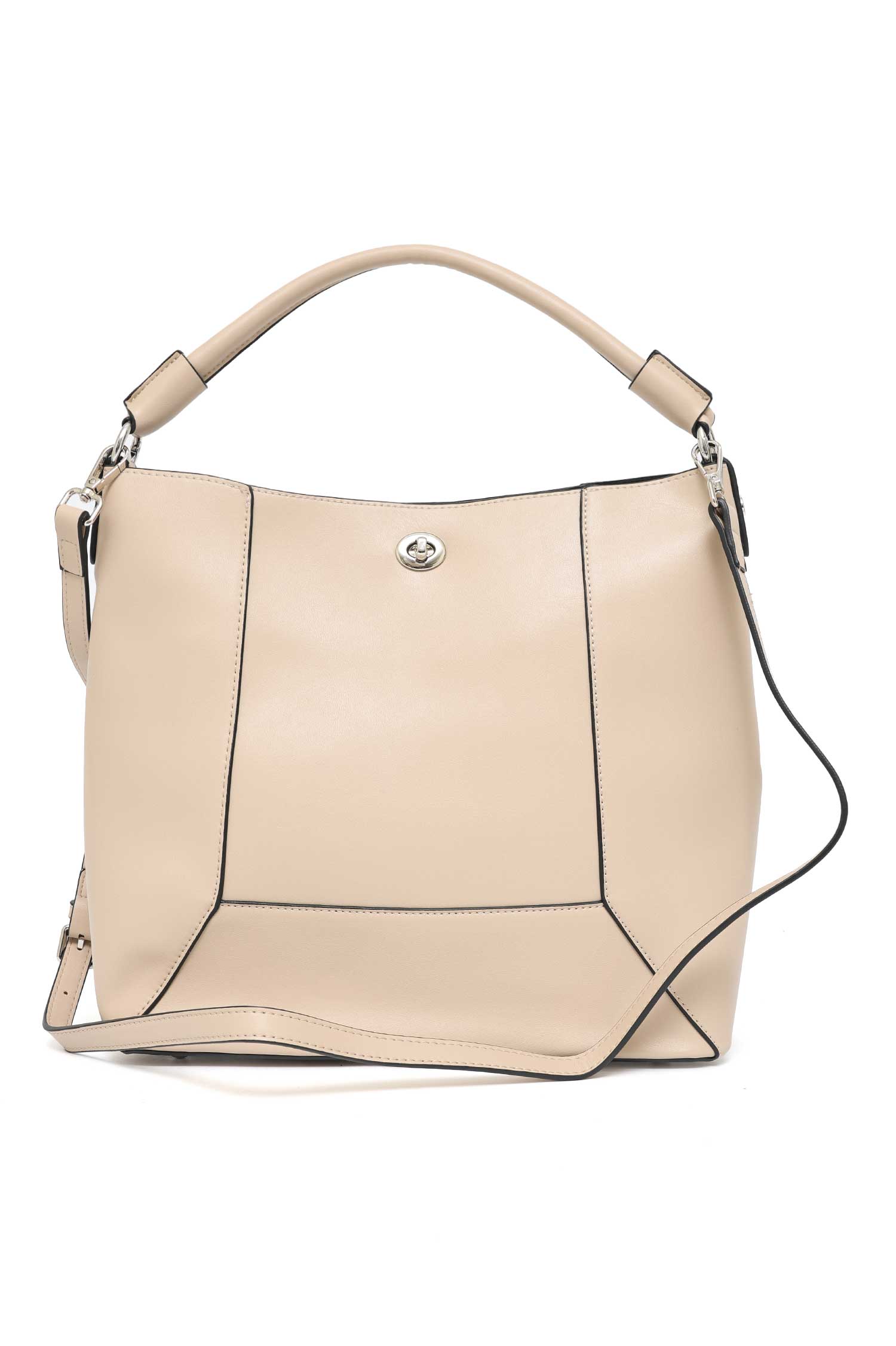 crafted with subtle pebble texture and accented with knotted top handles, it offers a refined bohemian touch. The detachable pouch can double as a clutch, making it a versatile staple for both daily errands and travel.