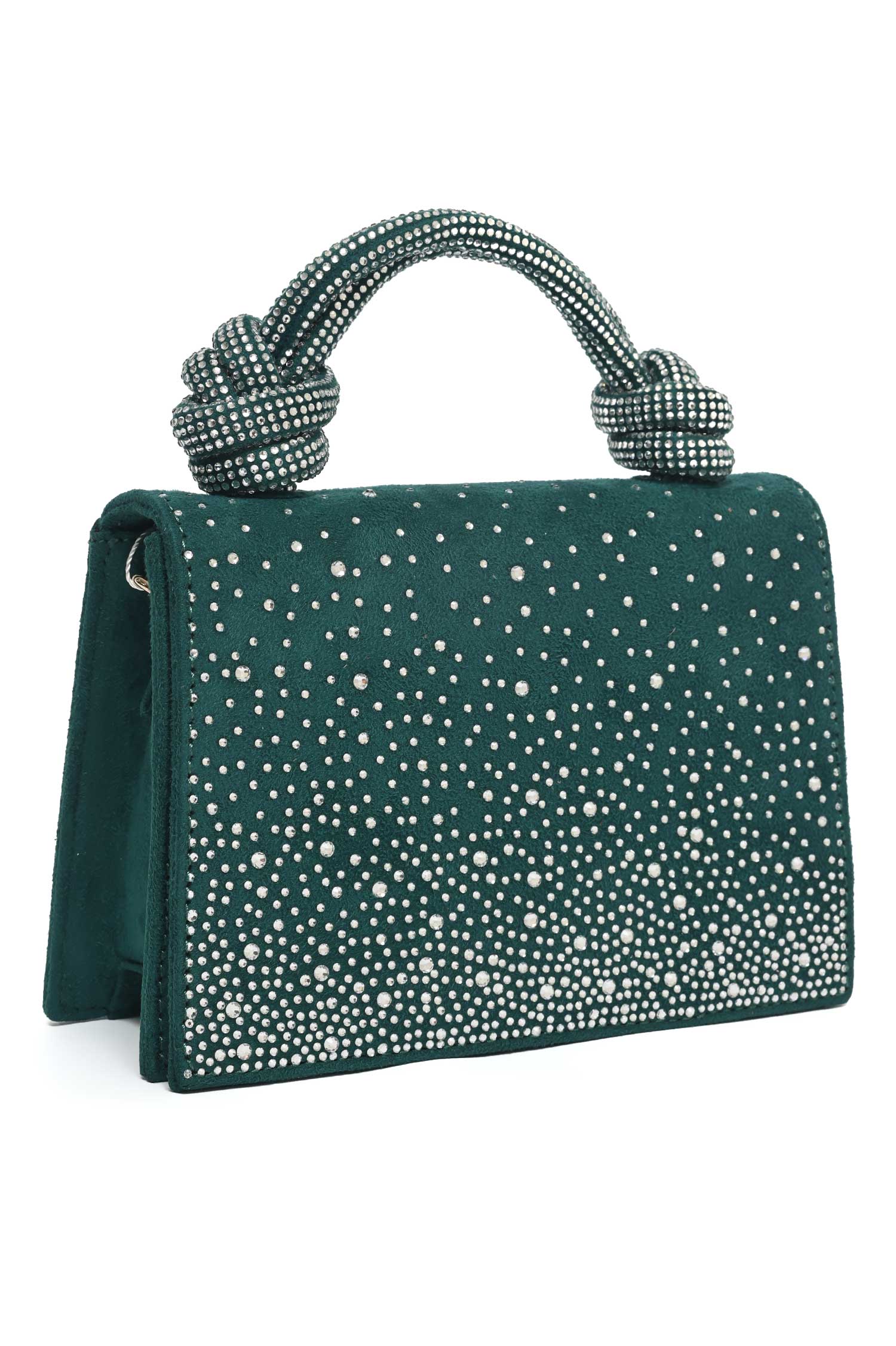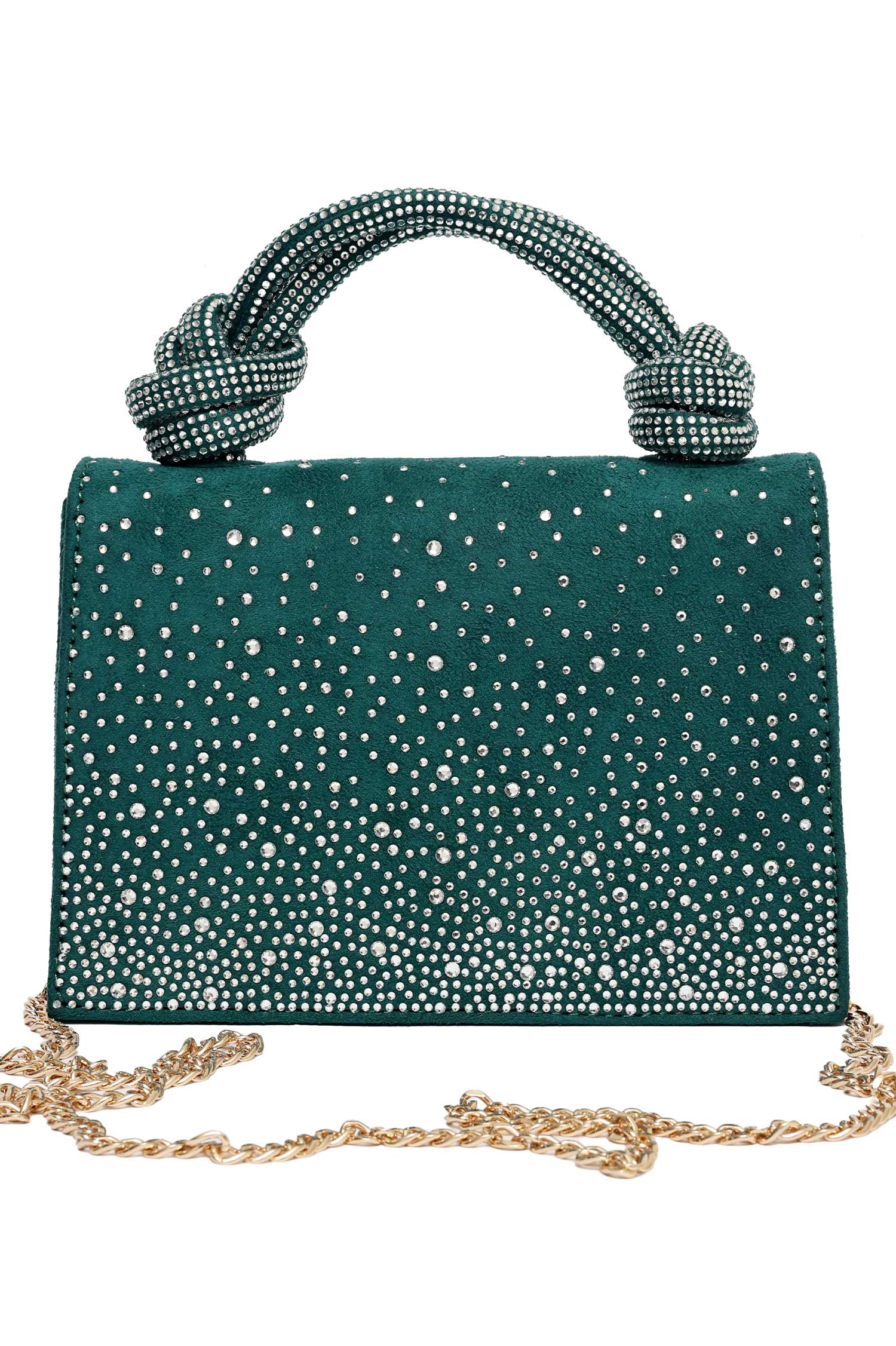 ELEGANT KNOT HANDLE RHINESTONE BAG-DK-GREEN