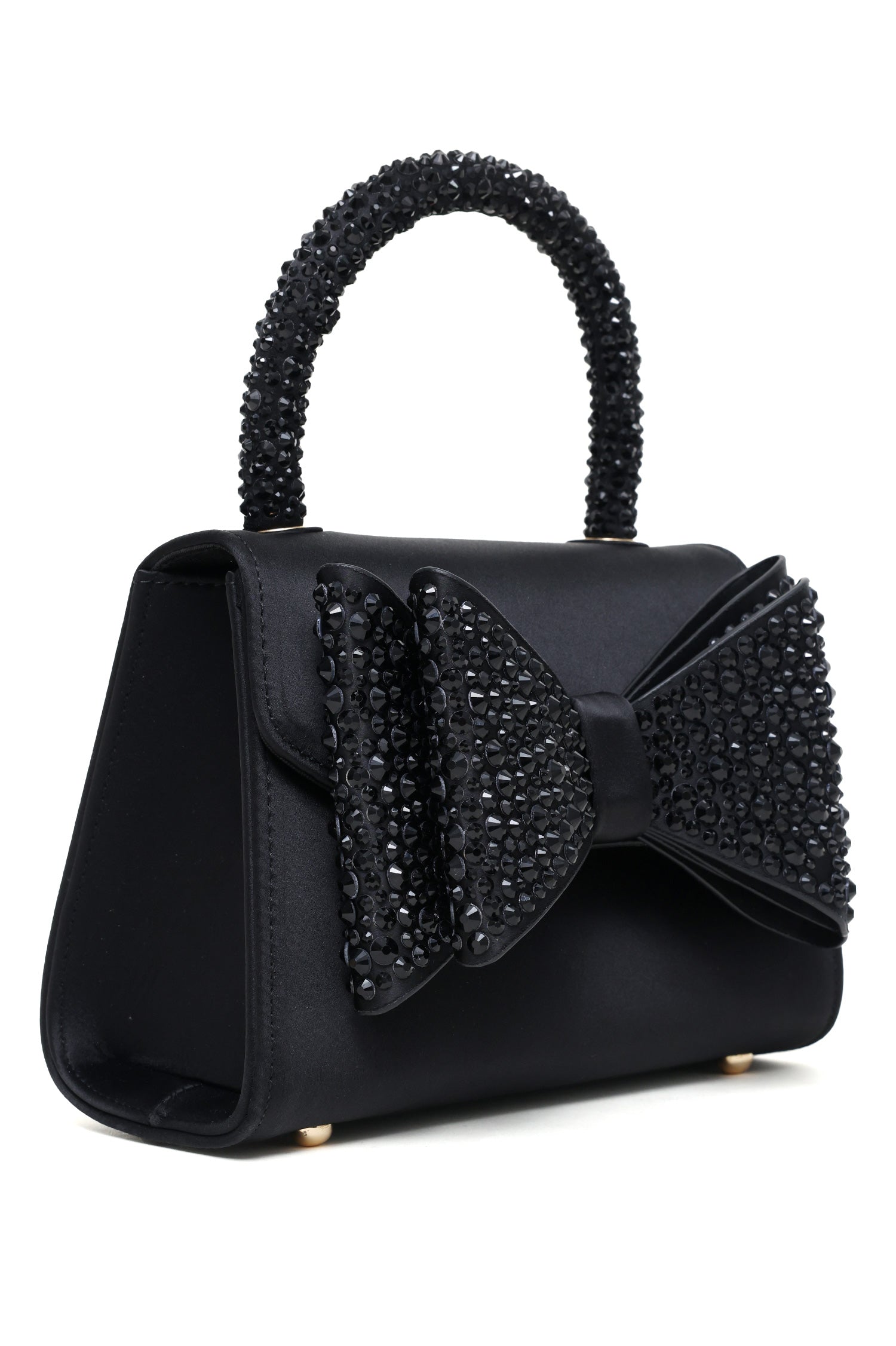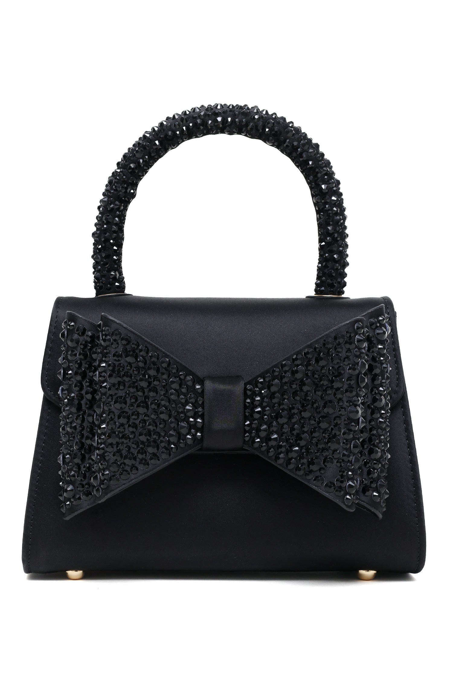 Make a glamorous statement with our Sparkle Bow Handbag, the perfect blend of elegance and charm. This stunning handbag features a large, beautifully crafted bow adorned with shimmering rhinestones, making it a standout accessory for any special occasion. The top handle, also embellished with rhinestones, adds an extra touch of sophistication. With its structured silhouette and spacious interior, this handbag is ideal for carrying all your essentials. The detachable chain strap provides versatile carrying options, allowing you to switch between a chic handbag and a stylish shoulder bag. Perfect for weddings, parties, or any event where you want to shine, the Sparkle Bow Handbag is your go-to accessory for adding a touch of sparkle and elegance to your look.