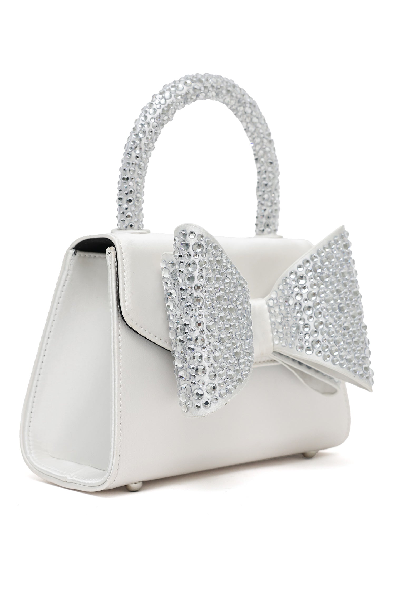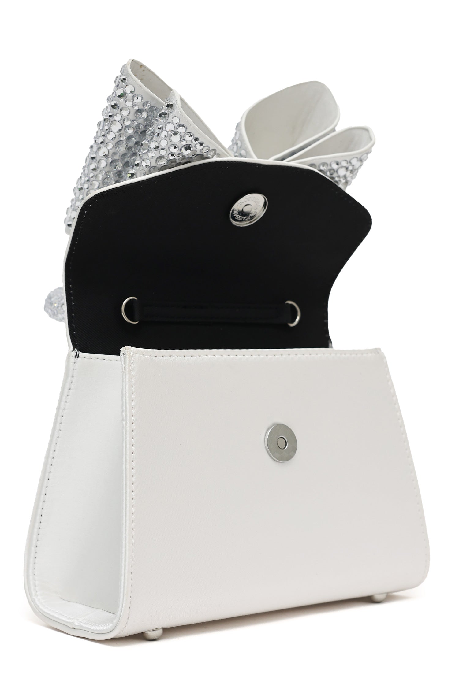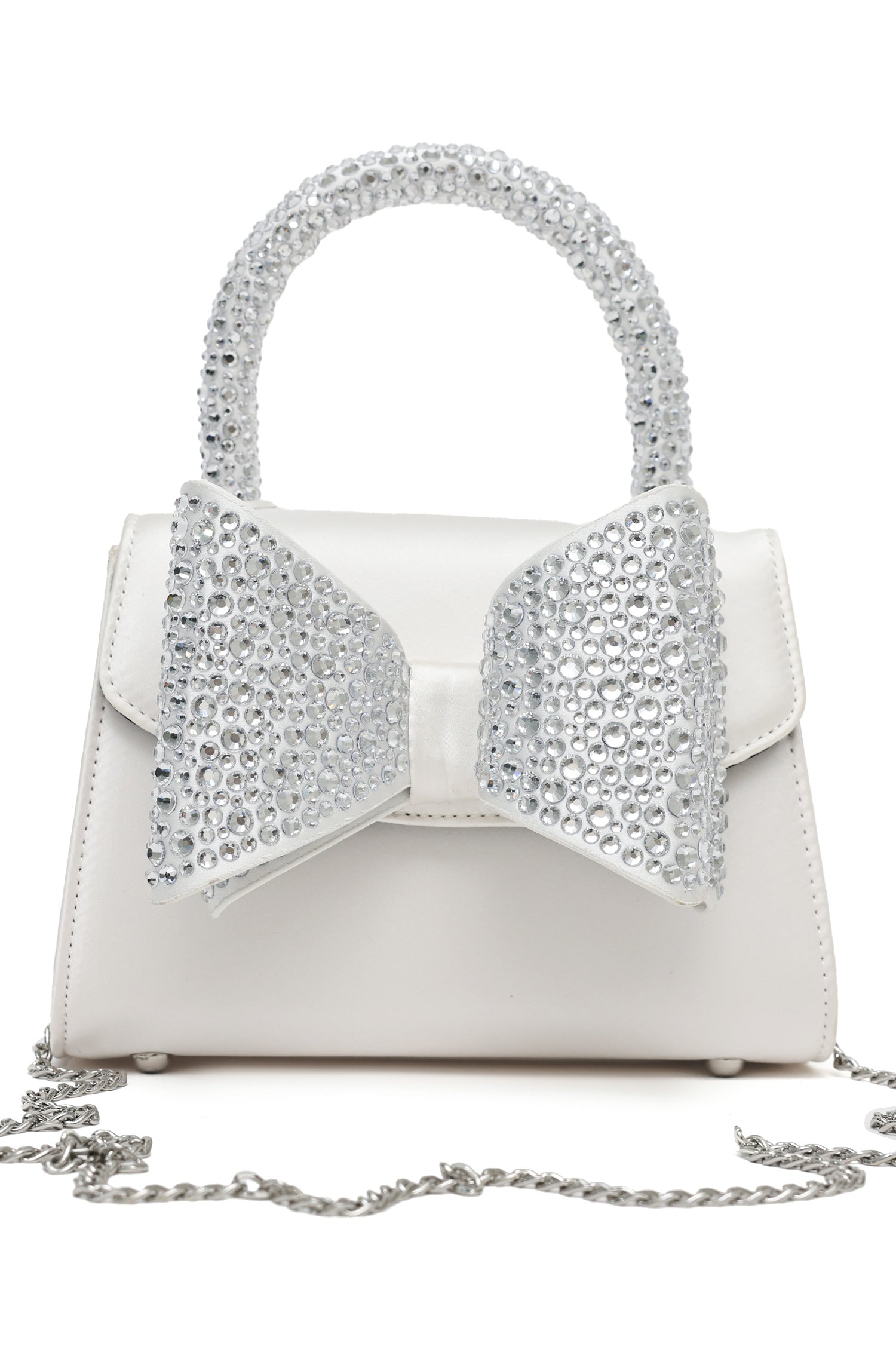 Add a touch of glamour to your ensemble with this elegant mini handbag. Featuring a dazzling crystal-embellished bow and handle, this bag is crafted from premium material with a structured design. Perfect for evening events or special occasions, it offers just enough space for your essentials while making a statement.