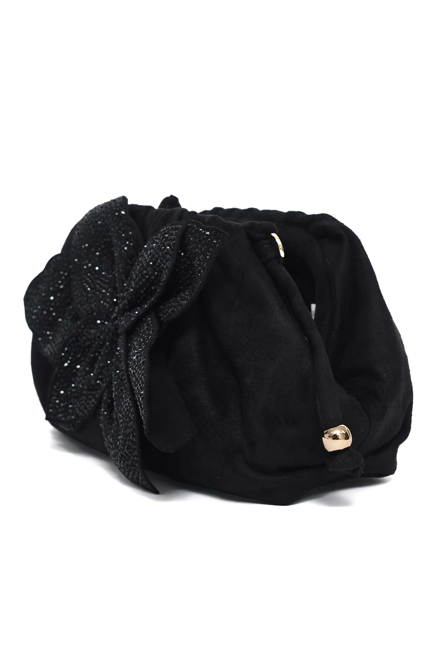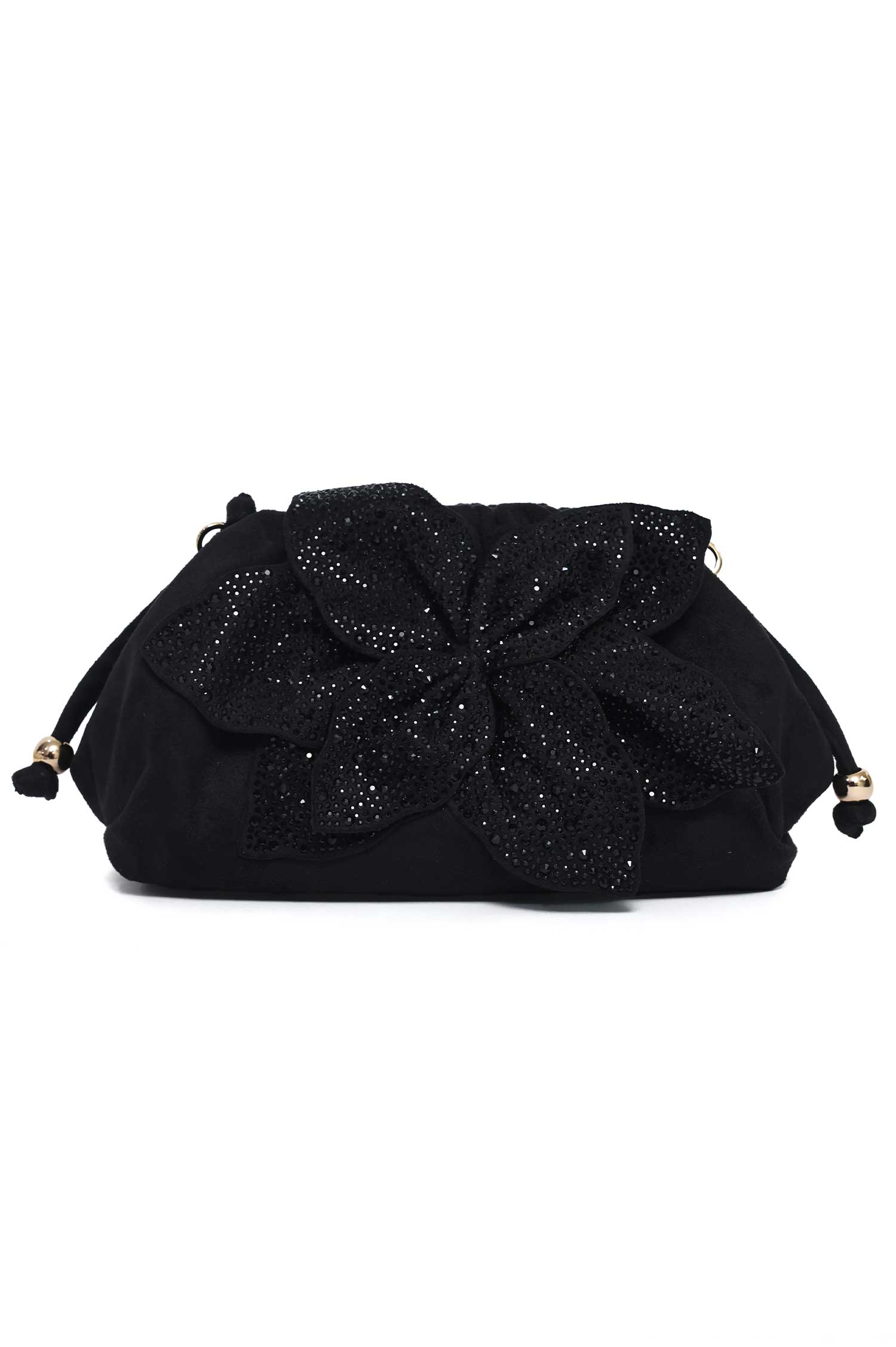 A bold floral centerpiece defines this dramatic evening clutch.