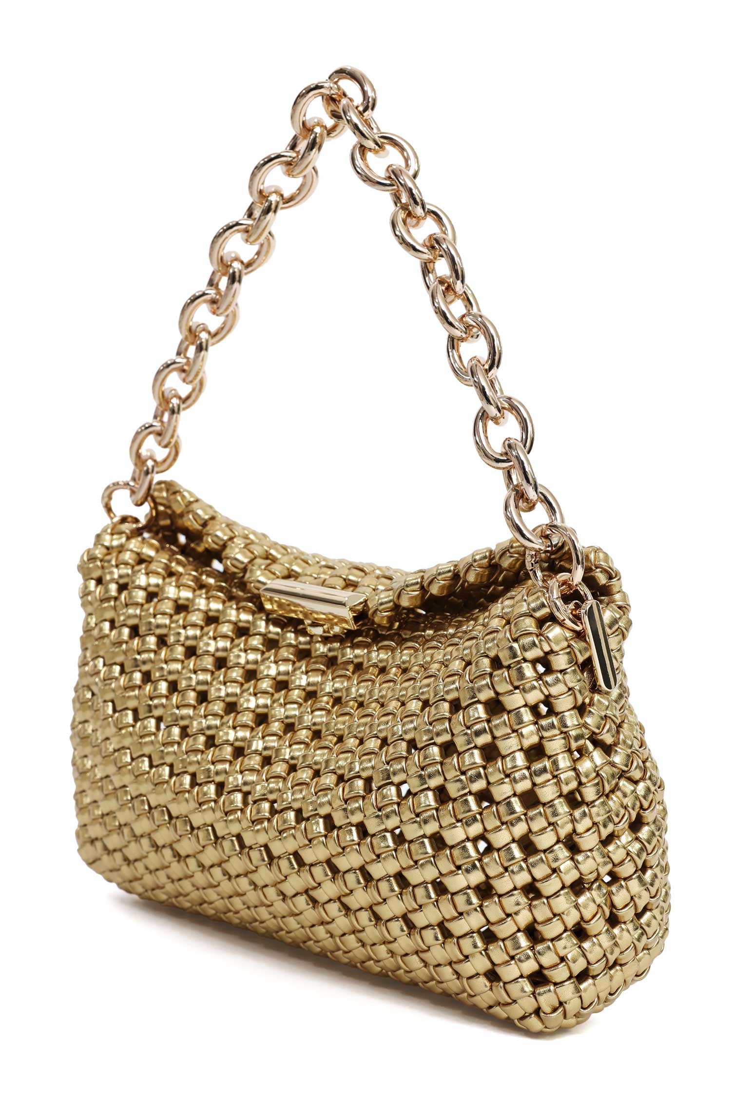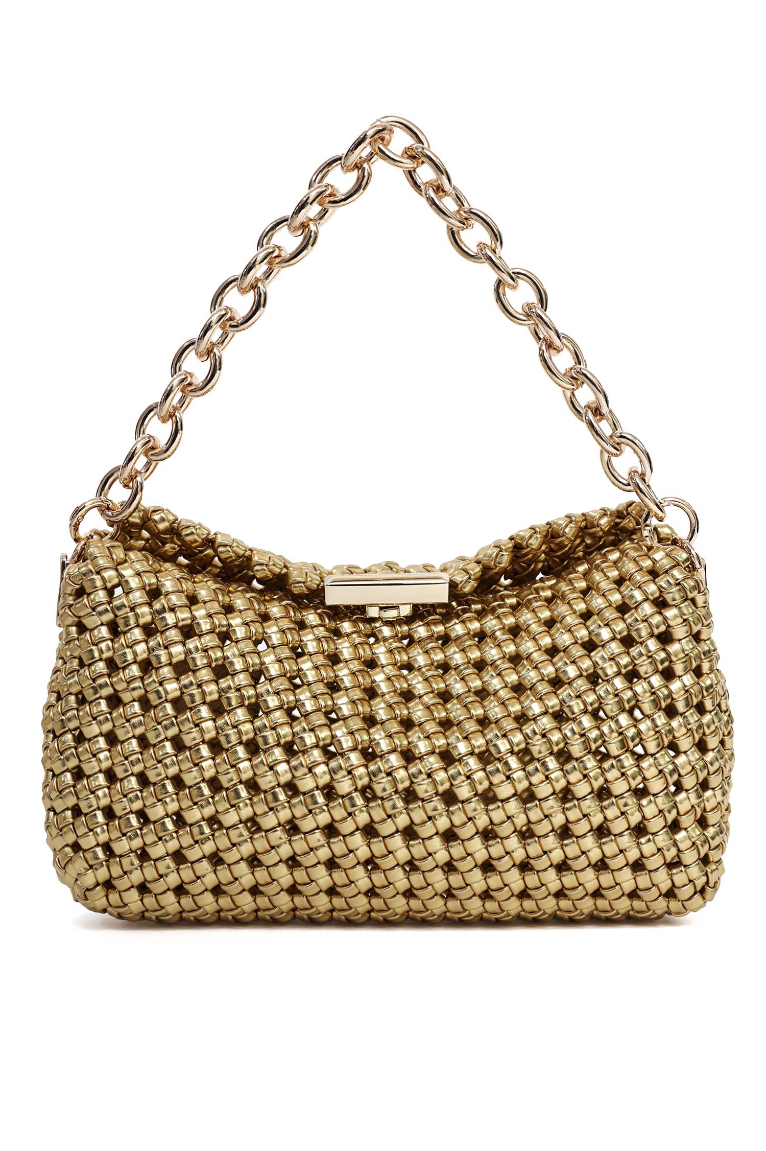 A bold chain handle enhances its high-fashion appeal.