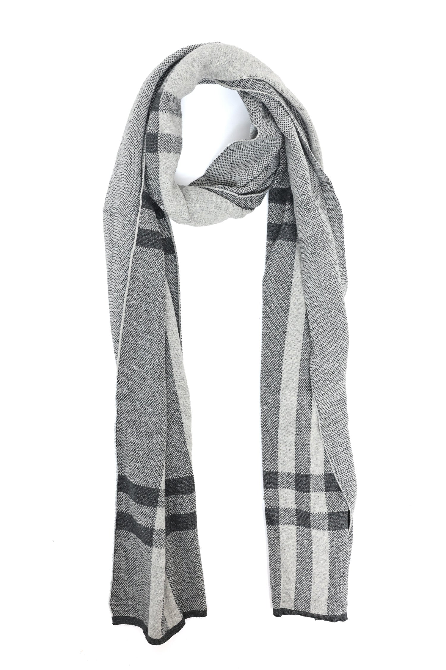 A refined scarf featuring bold plaid borders with a soft, woven texture. Designed for timeless elegance, it’s a versatile accessory perfect for casual and formal looks alike.