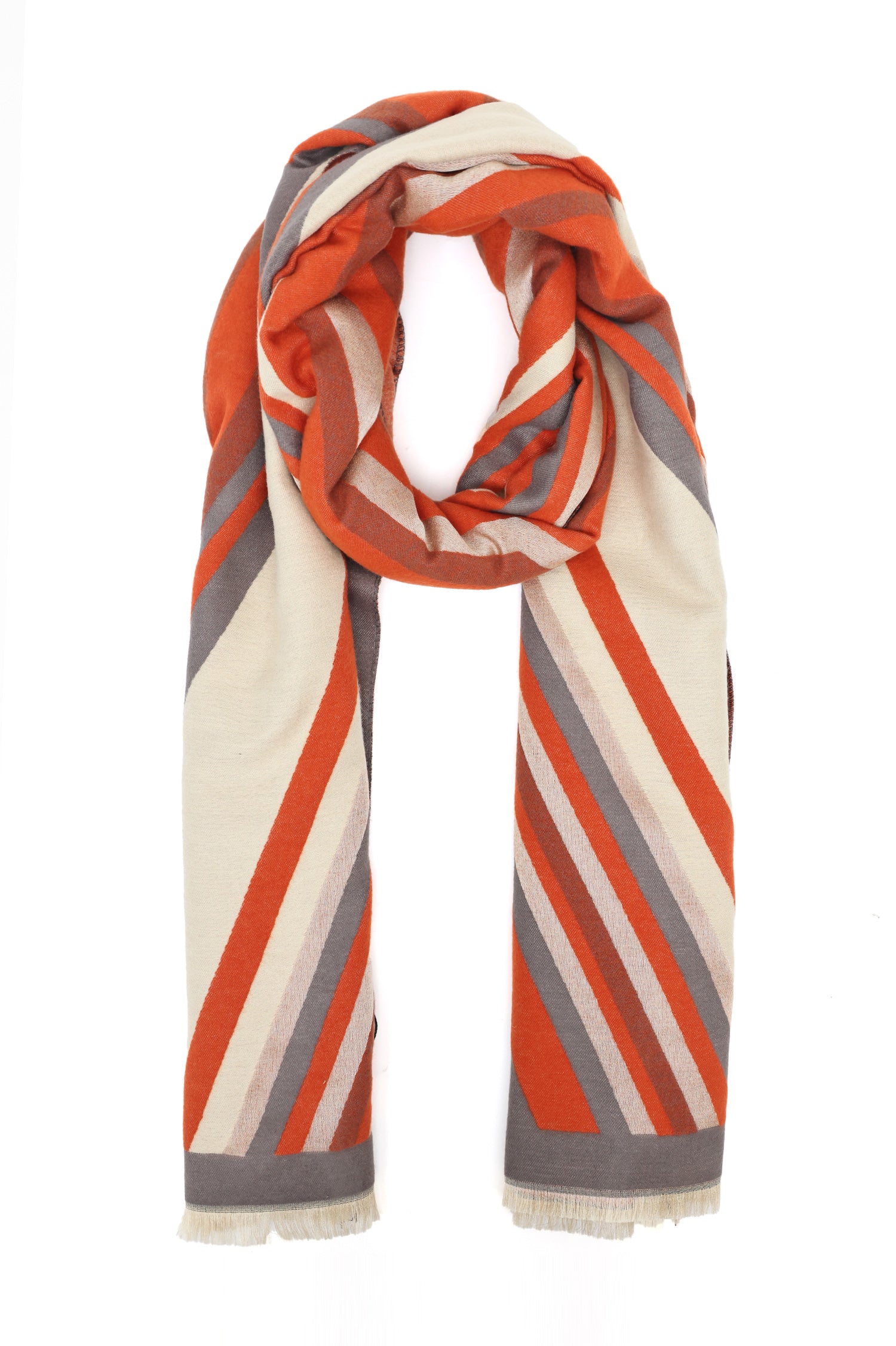 A modern scarf featuring bold diagonal stripes for a dynamic, contemporary look. Crafted from soft, lightweight material, this versatile piece adds a stylish touch to any outfit, perfect for elevating both casual and formal ensembles.