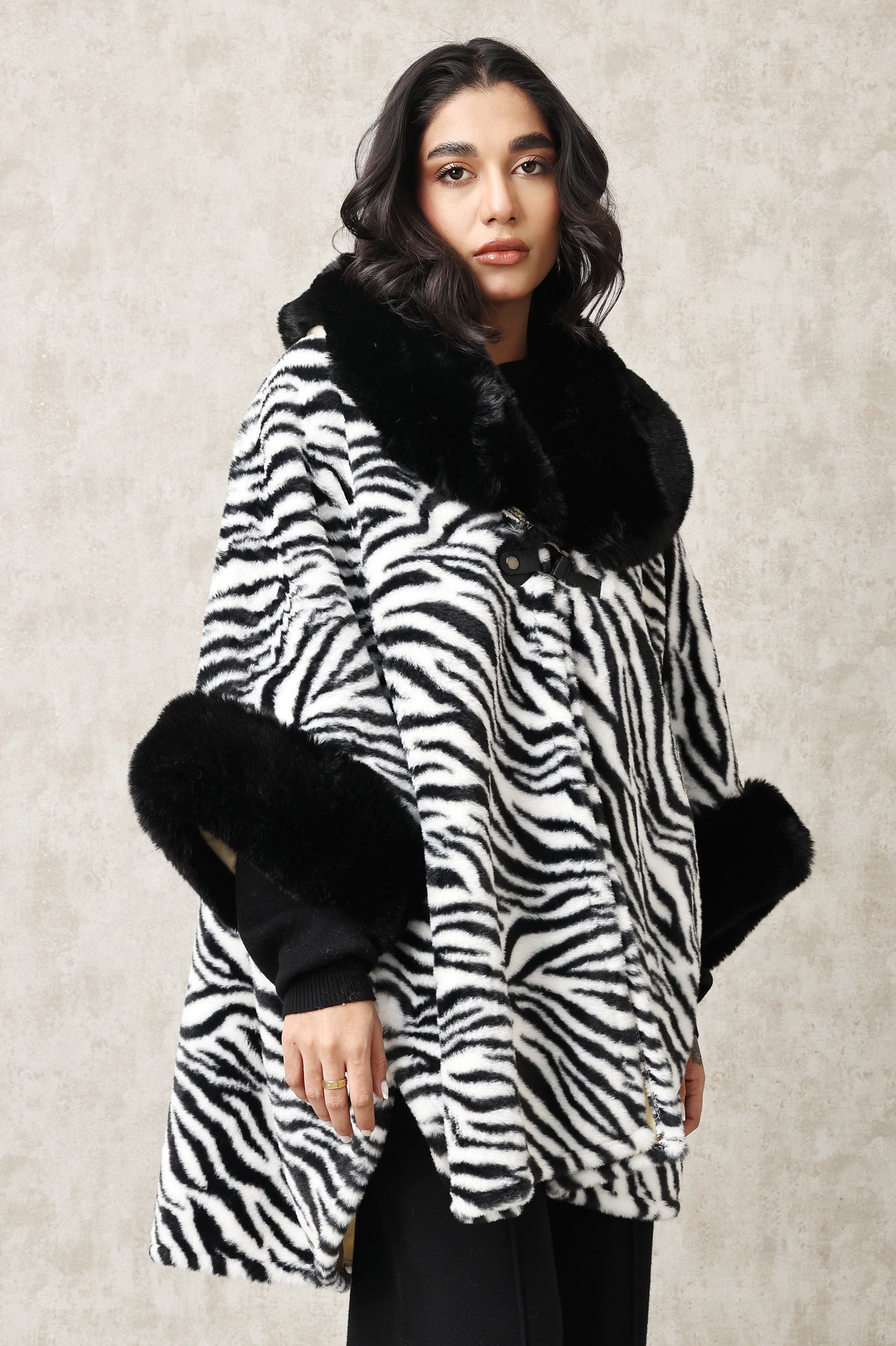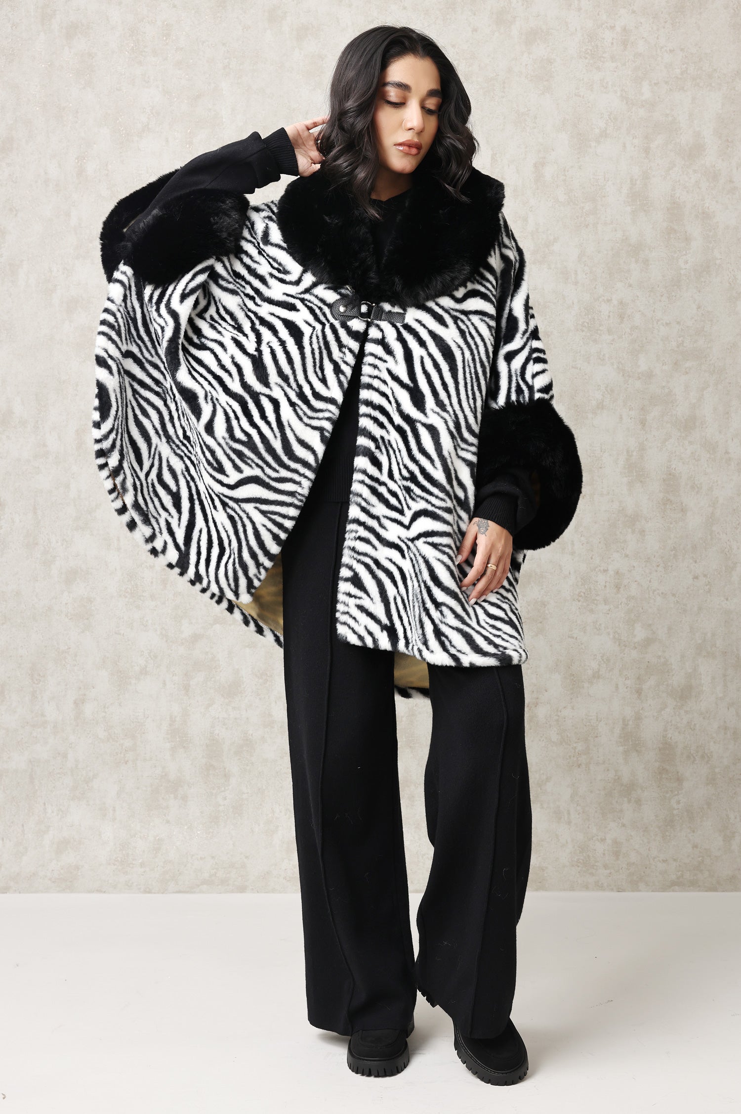 STATEMENT FUR CAPE WITH STRUCTURED COLLAR-ZEBRA