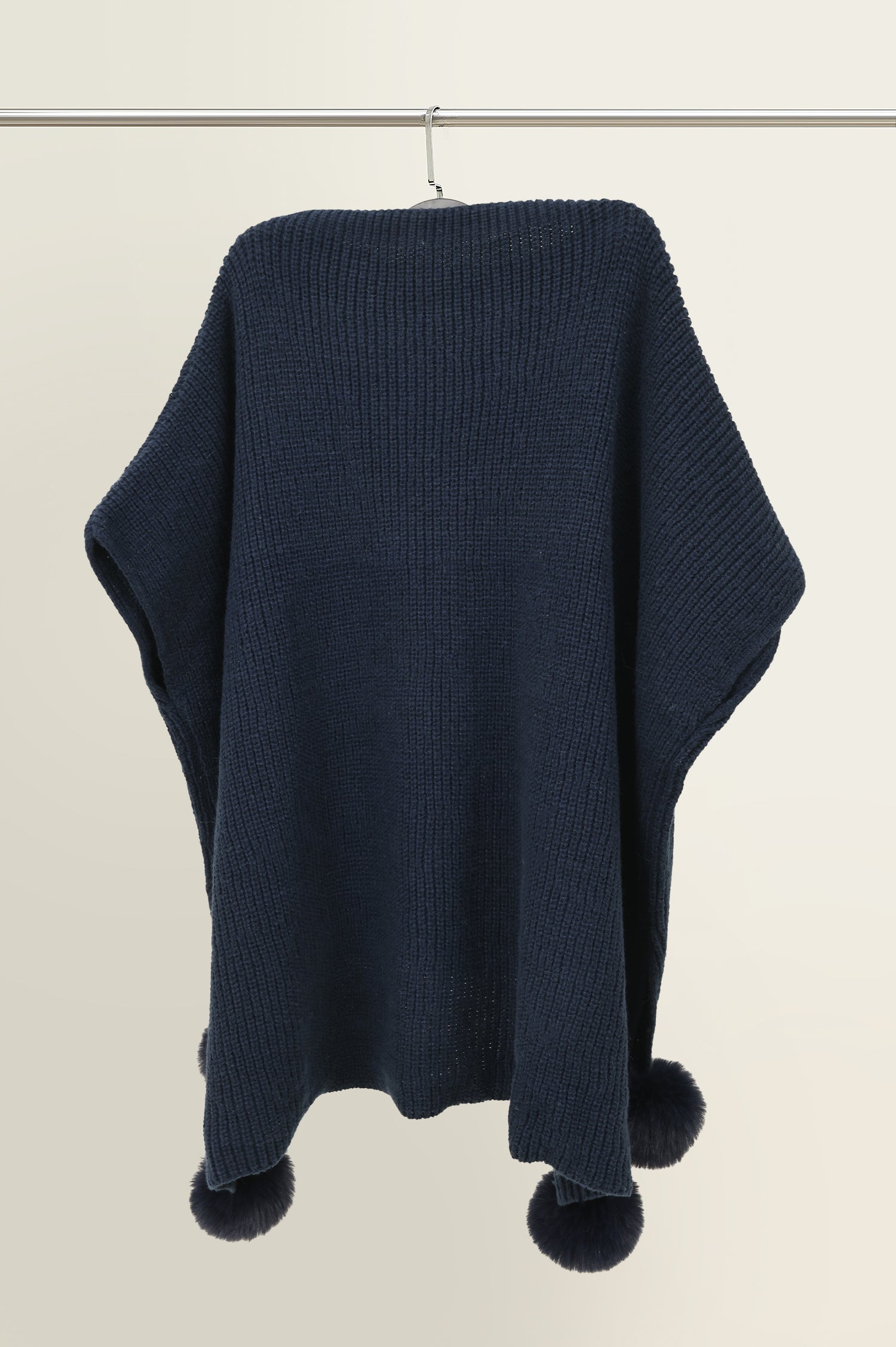 Crafted in chunky knit with a softly structured body, this poncho wraps with ease and comfort. pom-pom tassels lend a lighthearted twist to the otherwise elevated shape. a winter-ready companion.